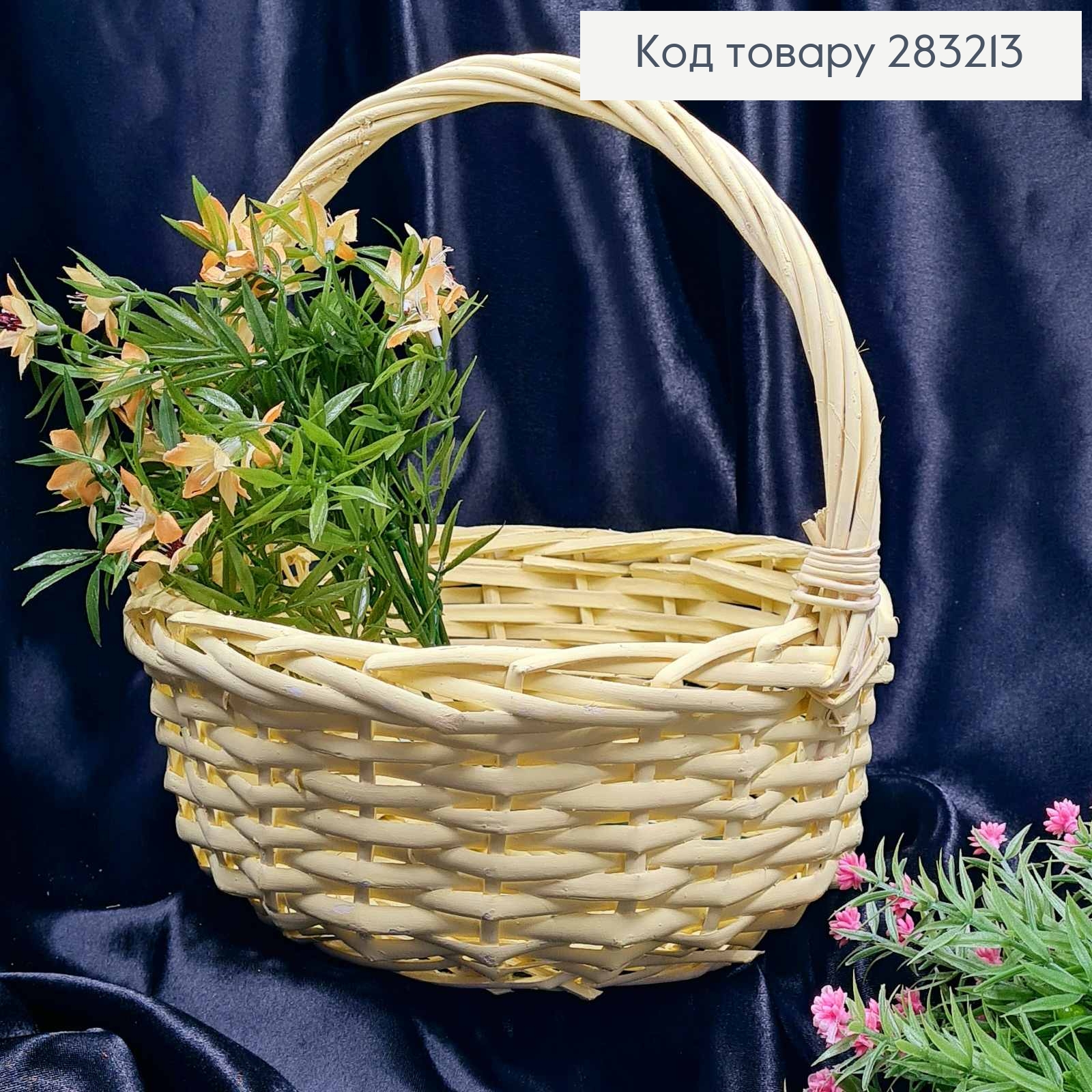 Корзина-Кашпо Плетеная, с подкладкой, КРУГЛАЯ с подвижной ручкой, 14*10см + ручка 11см 283150 фото
