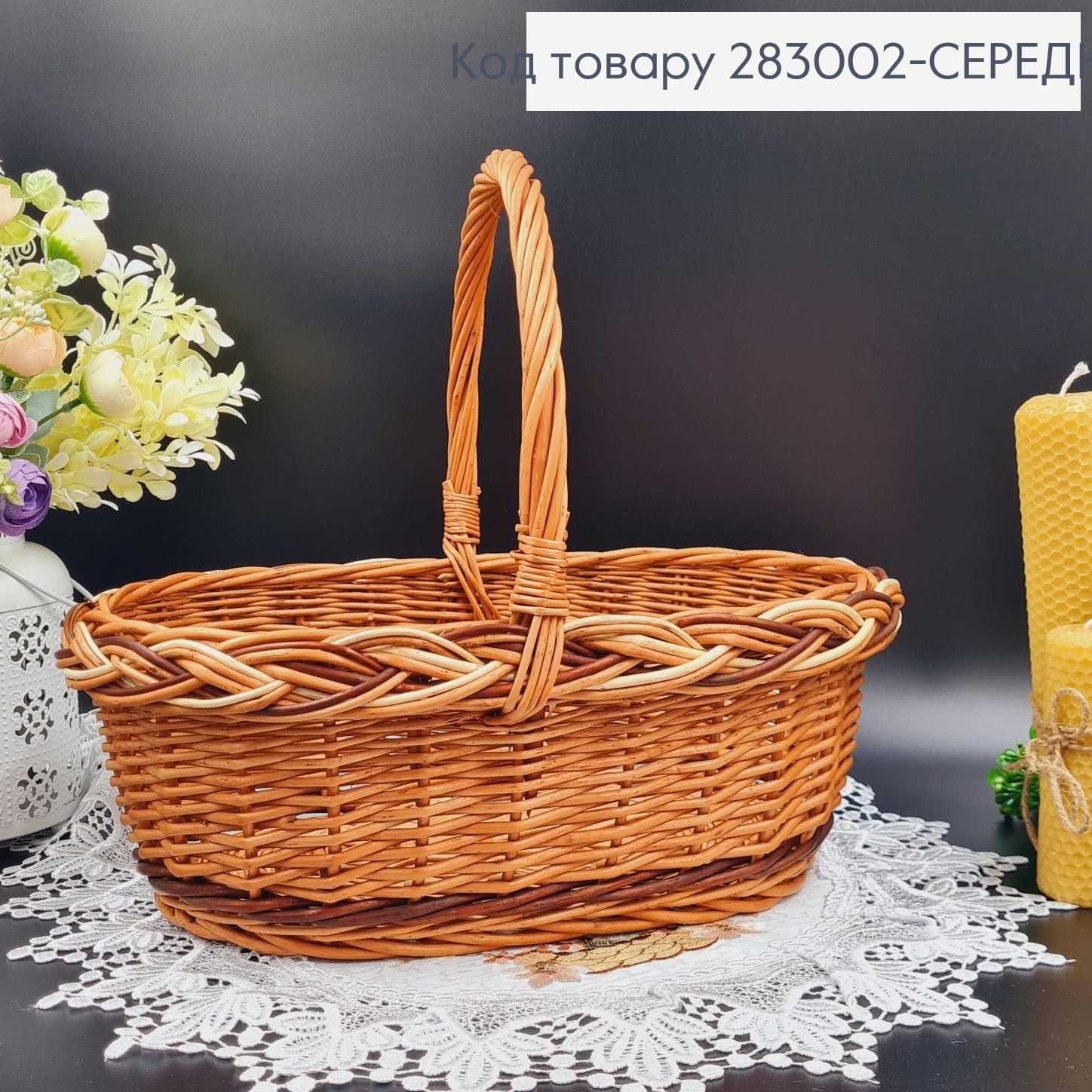 Кошик плетеный лозовый КОРИЧНЕВЫЙ (средний) (36*23*(глубина10+ручка18)см), Польща