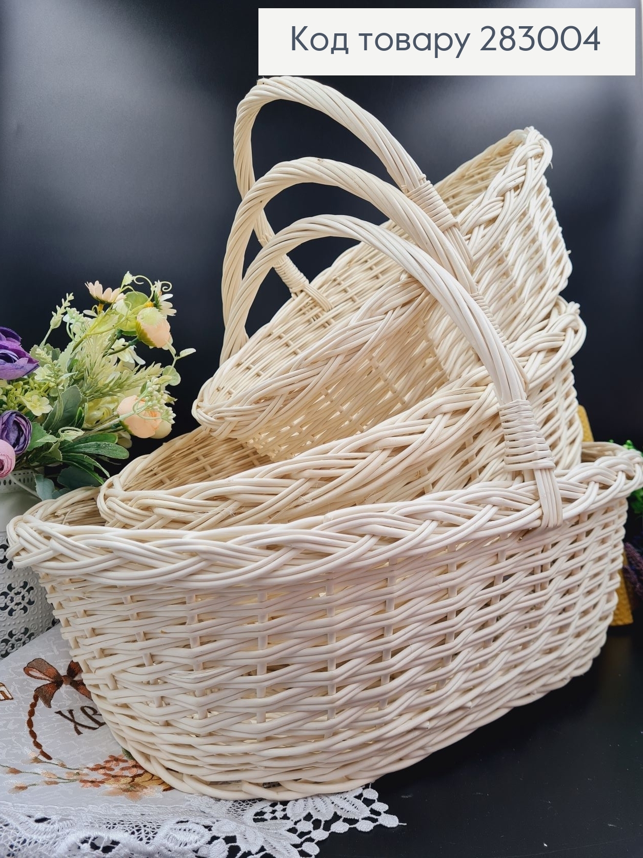 Набір 3шт: Кошик плетеный лозовый МОЛОЧНЫЙ (49*35*(15+19) (41*29*(13+15)см),(37*25*25см) Польща