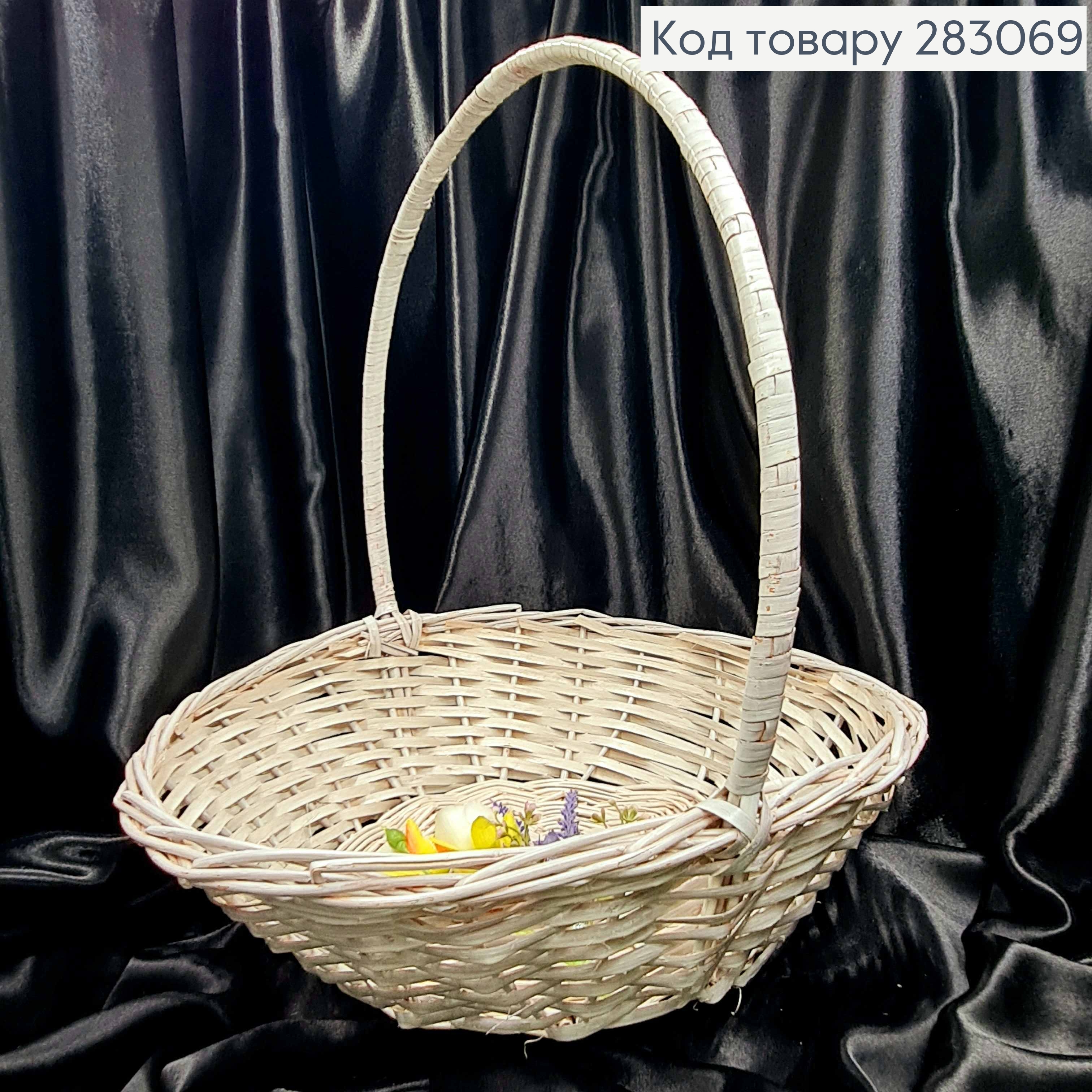 Корзина плетеная ПЛОСКАЯ белая, диаметр: верх-40см,низ-26см, глубина:11см+ ручка 30см, УКРАИНА