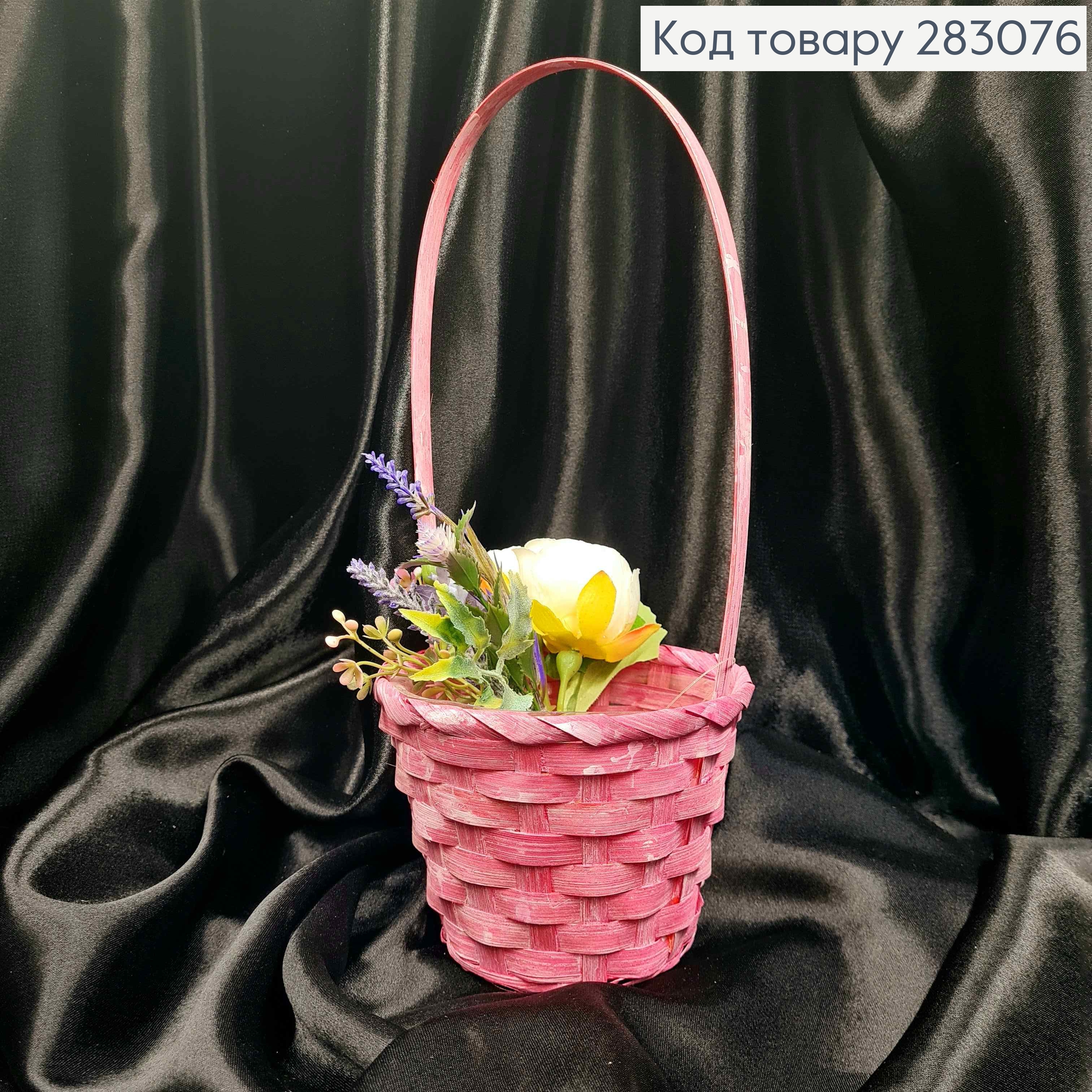 Корзина плетеная Розовая (Глубина 9см+ ручка 22см, Диаметр верх: 13см, низ:8см, ПОЛЬША