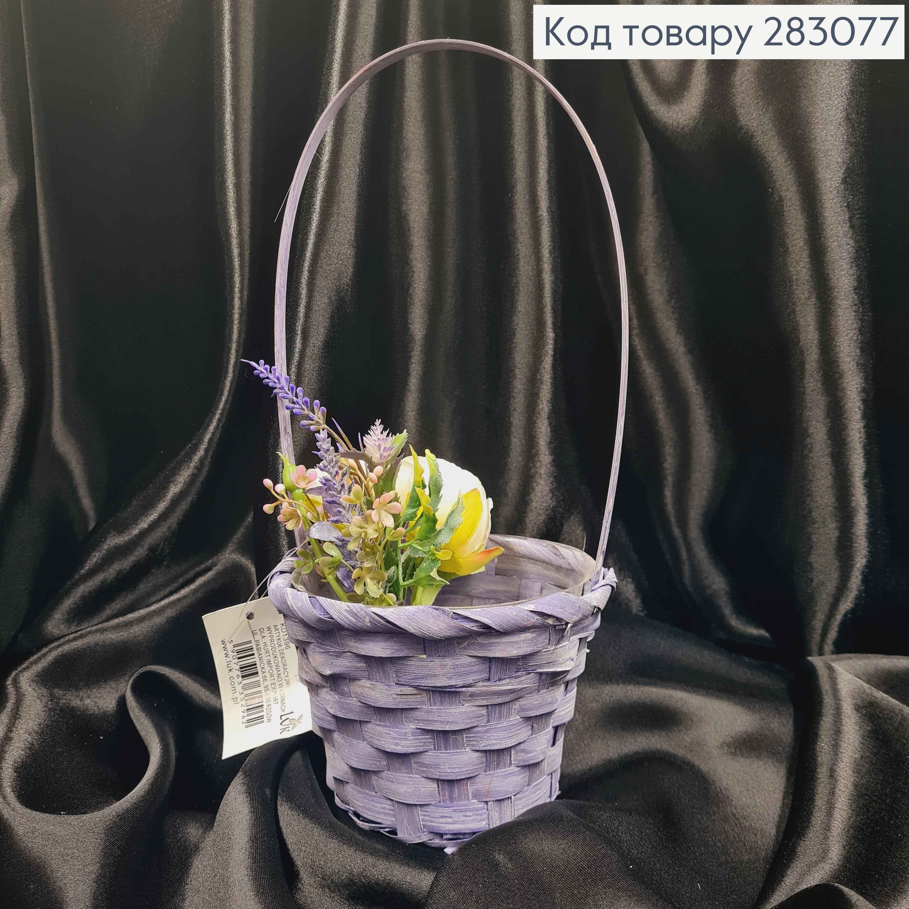 Корзина-Кашпо Плетеная, с подкладкой, КРУГЛАЯ с подвижной ручкой, 14*10см + ручка 11см 283148 фото