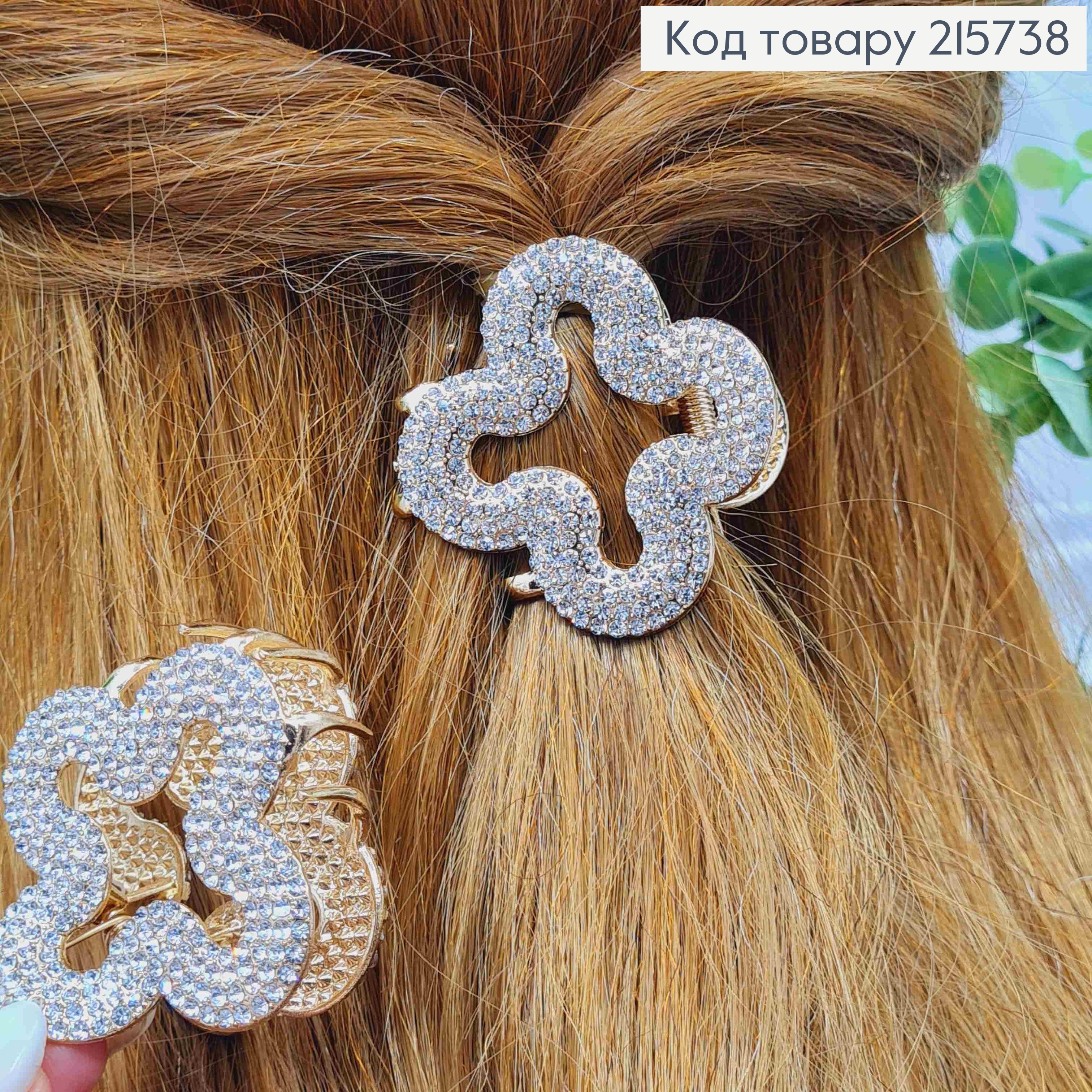 Краб металл "Четырехлистник" с блестящими камешками, 5см, Золотого цвета