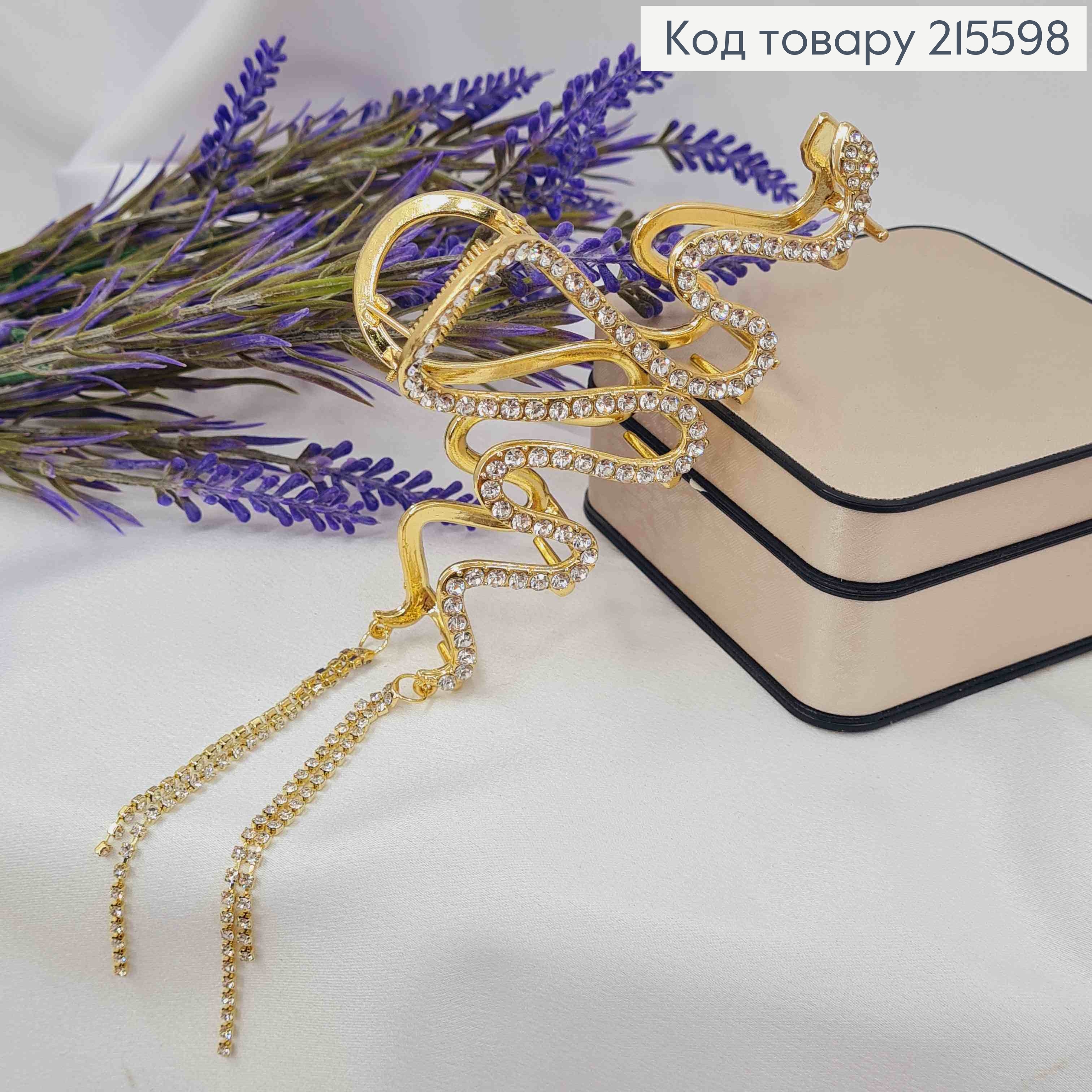 Краб металл "Петелька" украшен Блестящими камешками, 6см, Золотого цвета 215774 фото