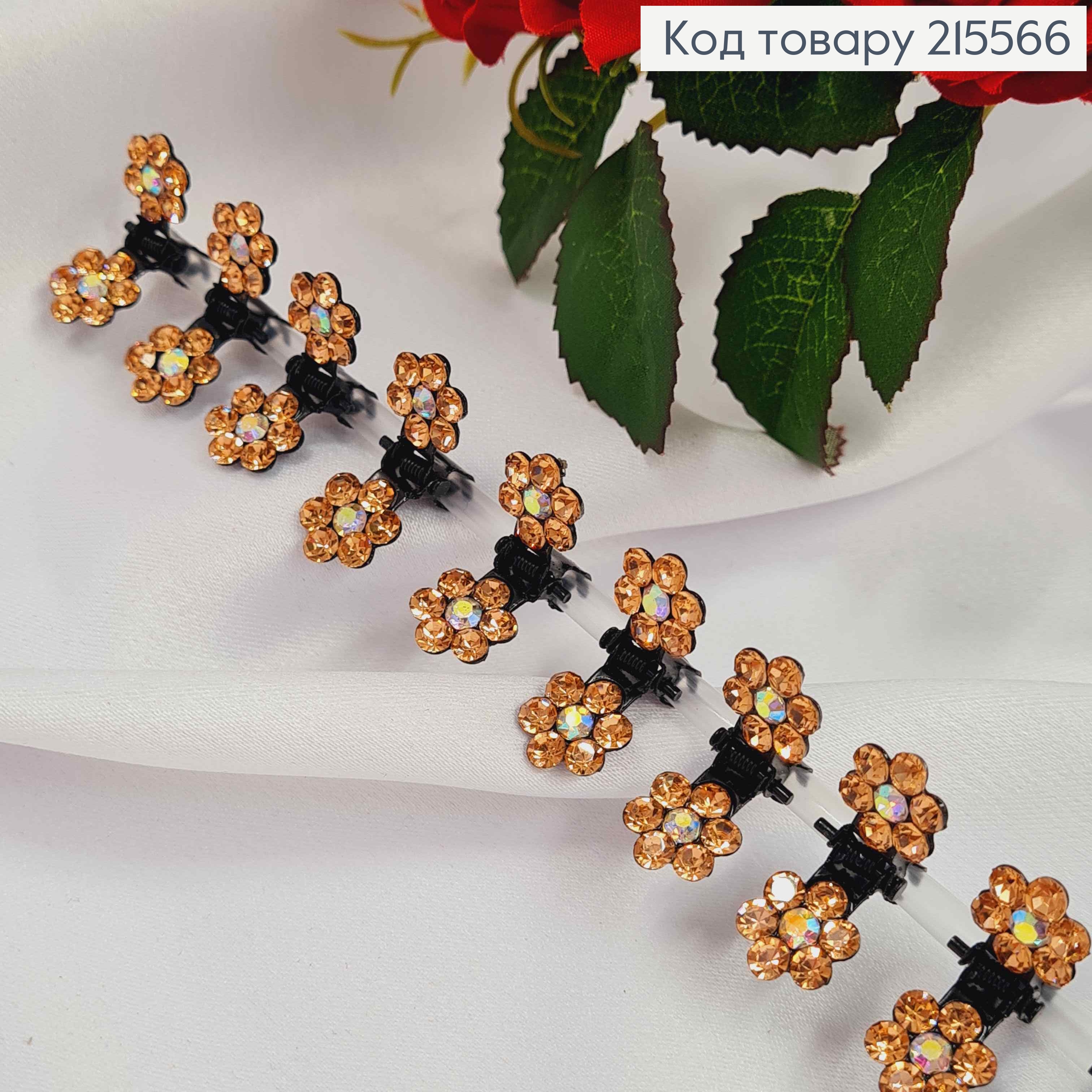 Краб металл, маленький, с двумя Цветочками в камешках Пудрового цвета, 1см, 12шт/уп