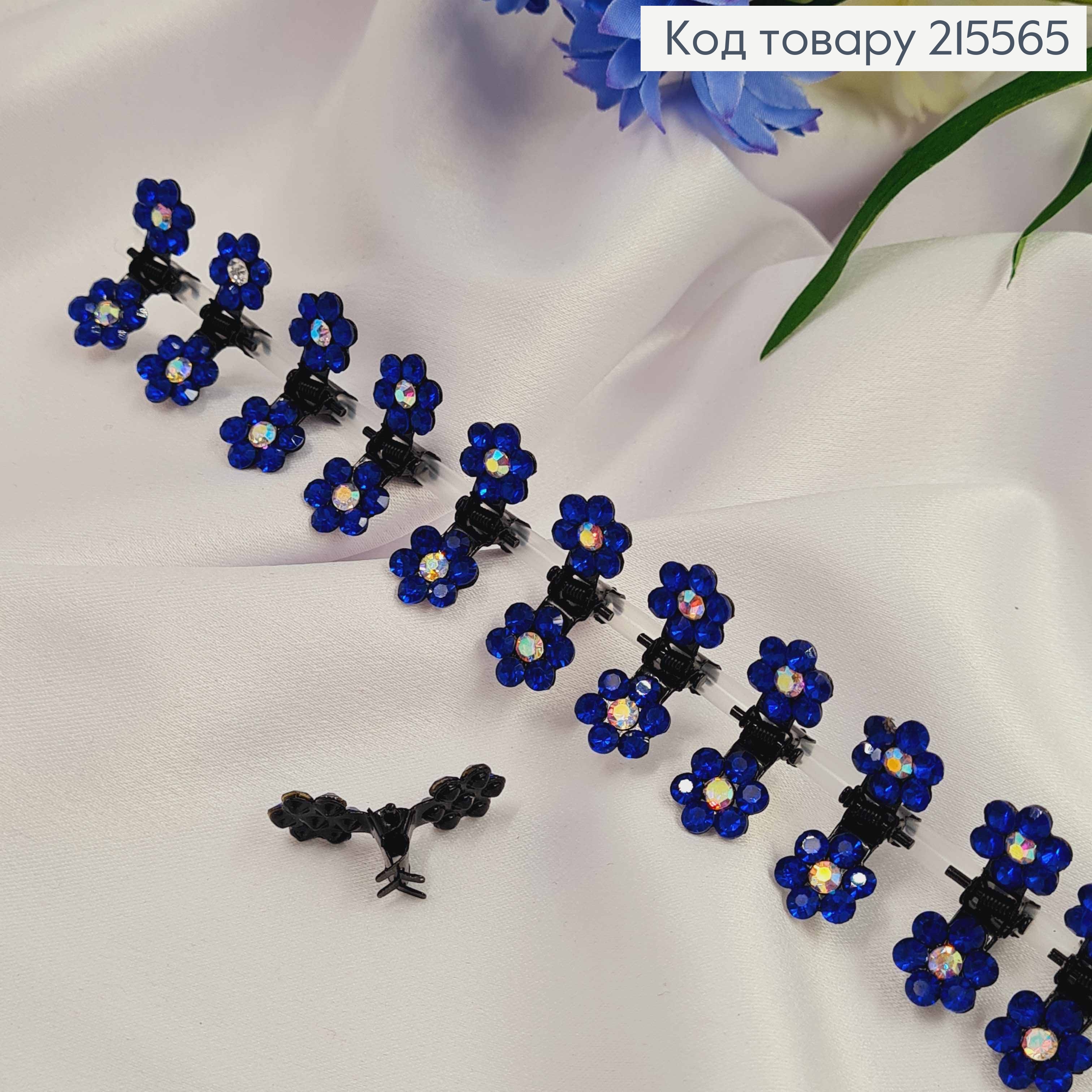 Краб металл, маленький, с двумя Цветочками в камнях Синего цвета, 1см, 12шт/уп