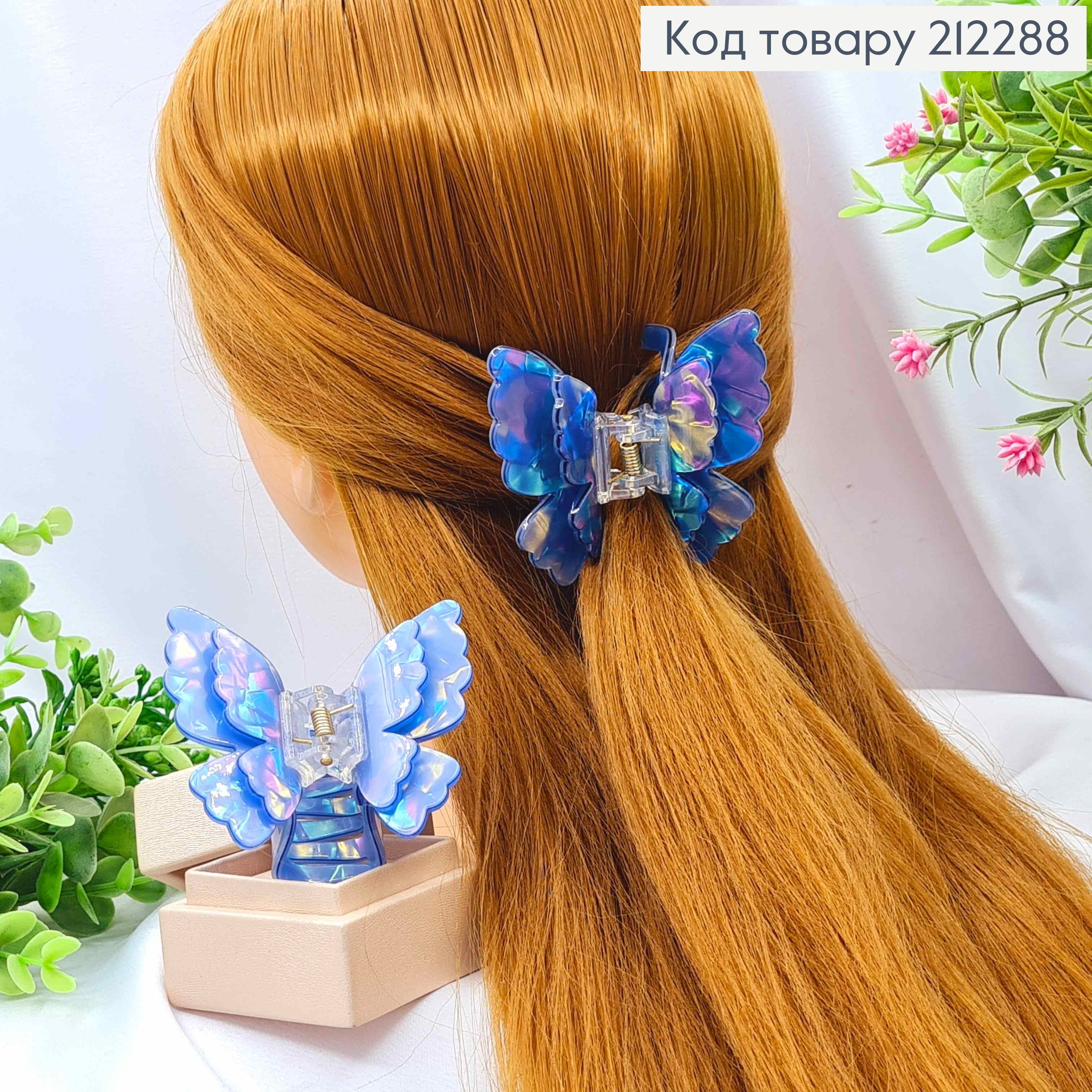 Краб пластик, Бабочка с ажурными крыльями, 7,5*8см, Перламутрово-Голубого цвета 214284 фото