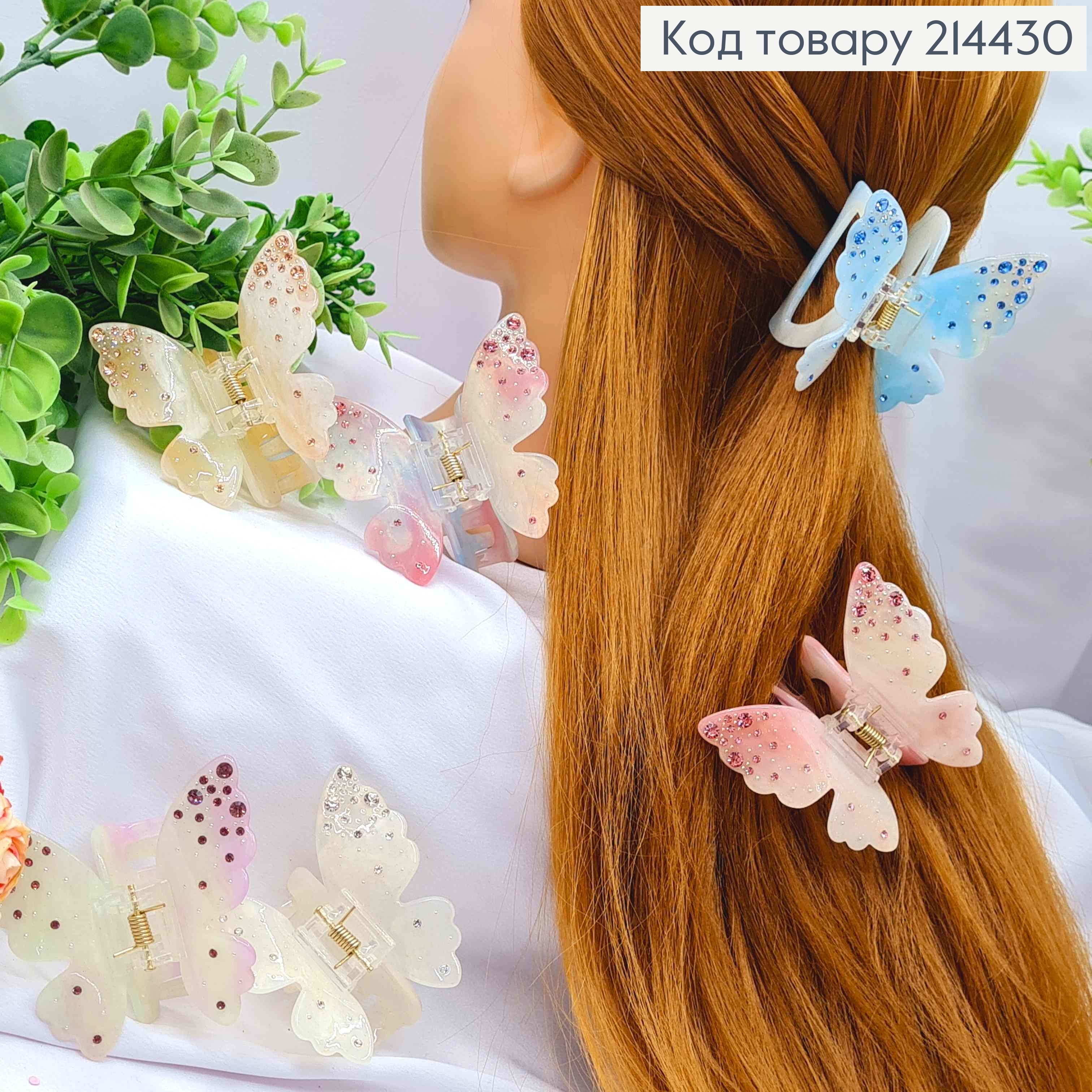 Краб пластик матовый "Бабочка" со стразами, 3,5*4,5см, Цвета в ассортименте 211240 фото