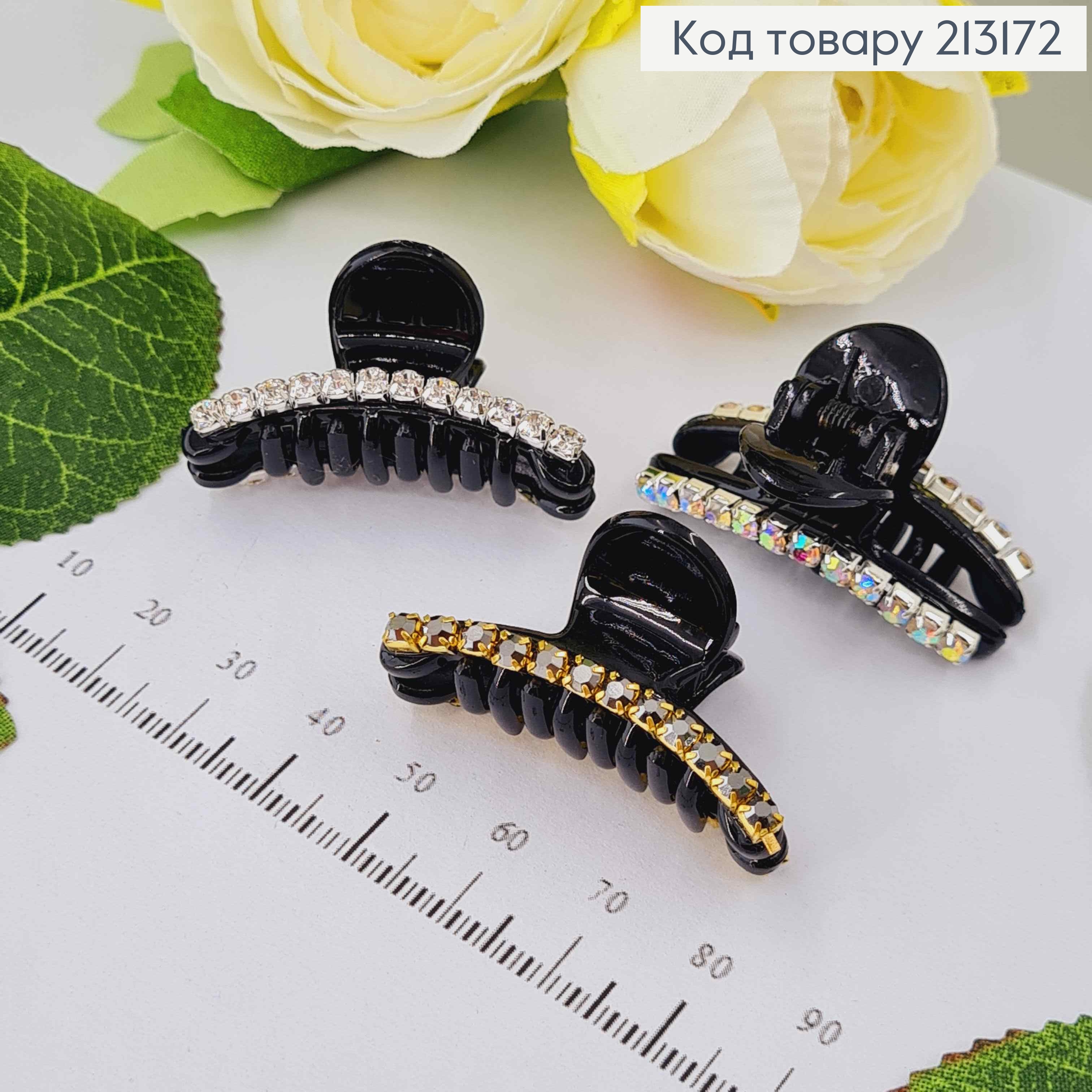 Краб пластик, черный, с линией камешков, цвета в ассорт. 3,5см