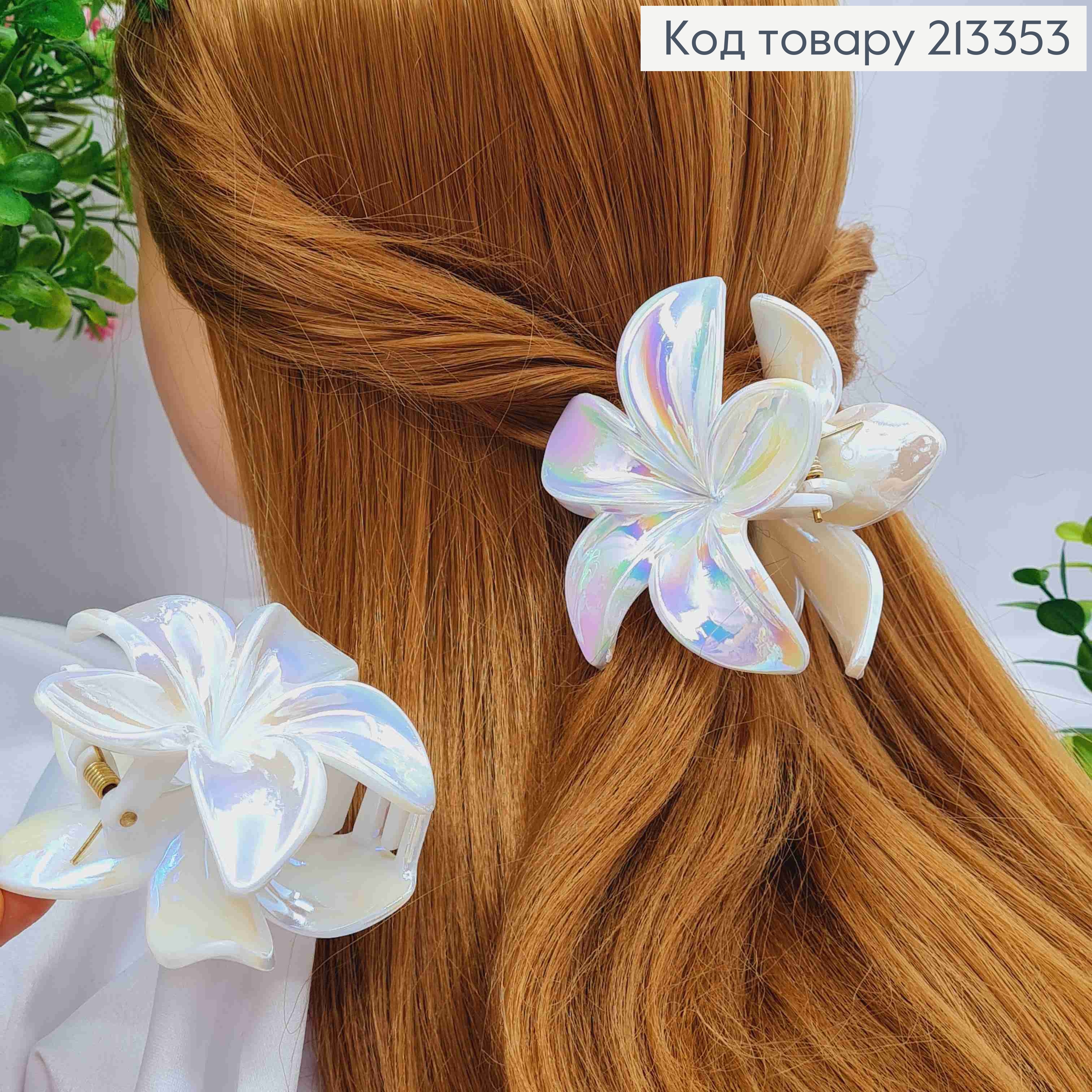 Краб пластик ГАВАЙСКИЙ цветок белый ПЕРЛАМУТРОВАЯ, размер 8см, цвета в ассортименте