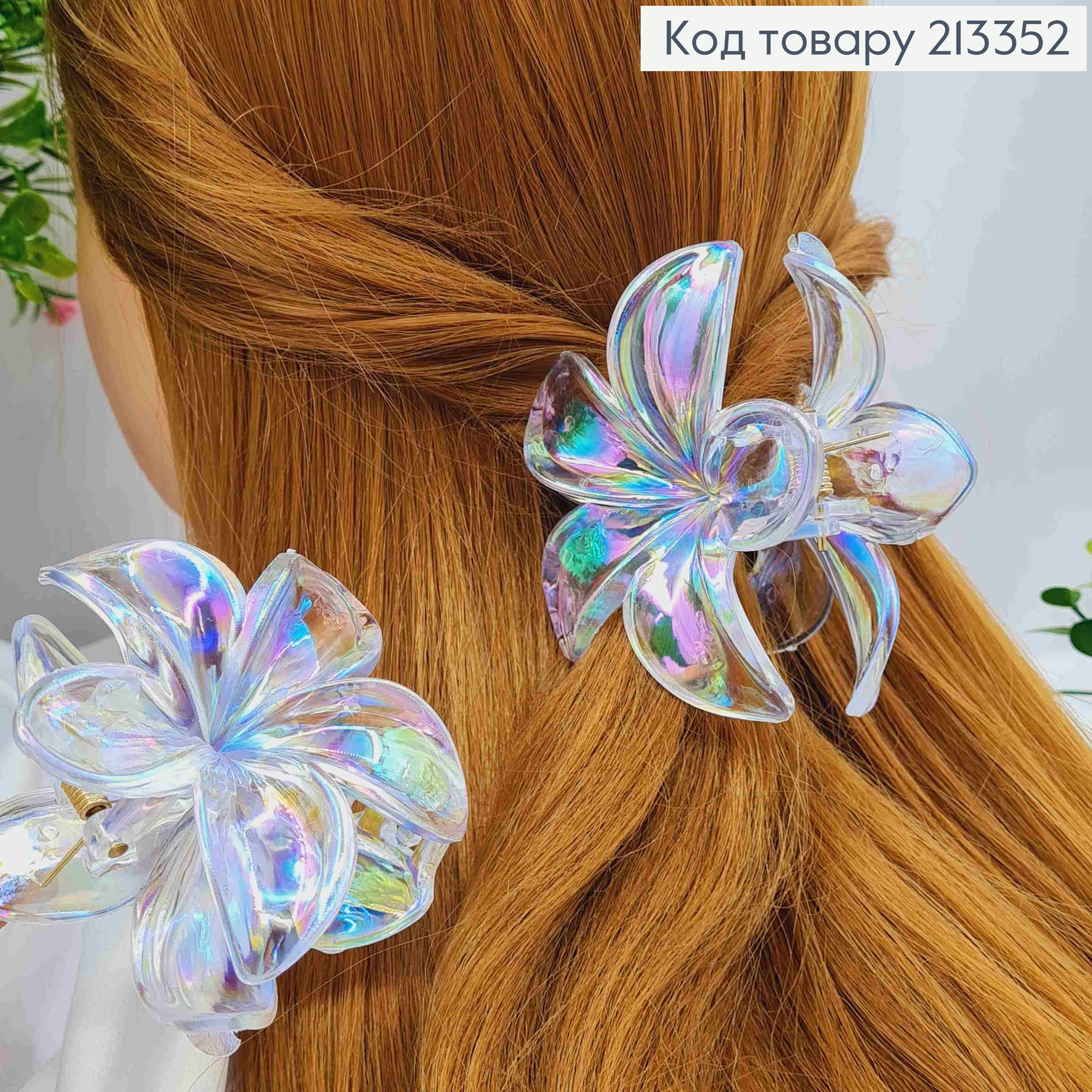 Краб пластик ГАВАЙСКИЙ цветок ПЕРЛАМУТРОВАЯ прозрачная, размер 8см, цвета в ассортименте