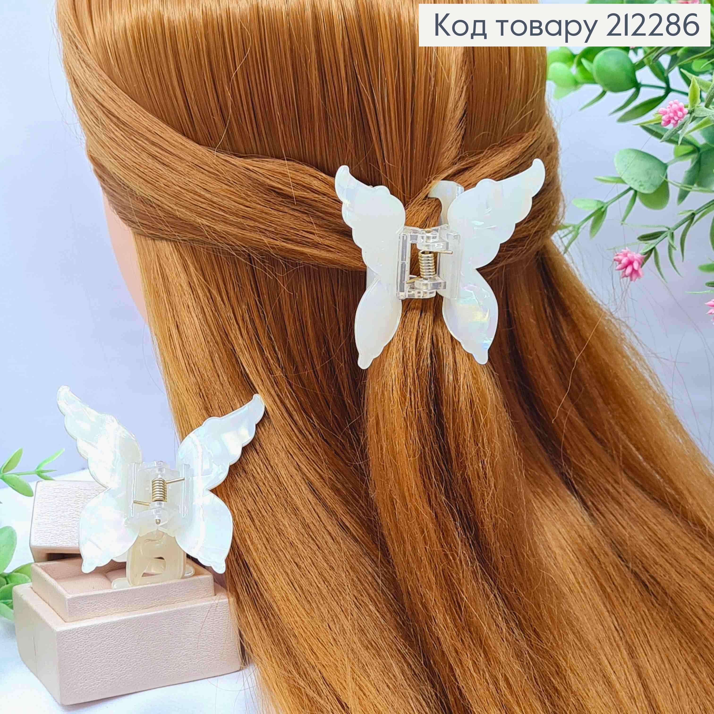 Краб пластик глянцевый (акрил) "БАБОЧКА", размером 6,5*6см, Бело-перламутрового цвета