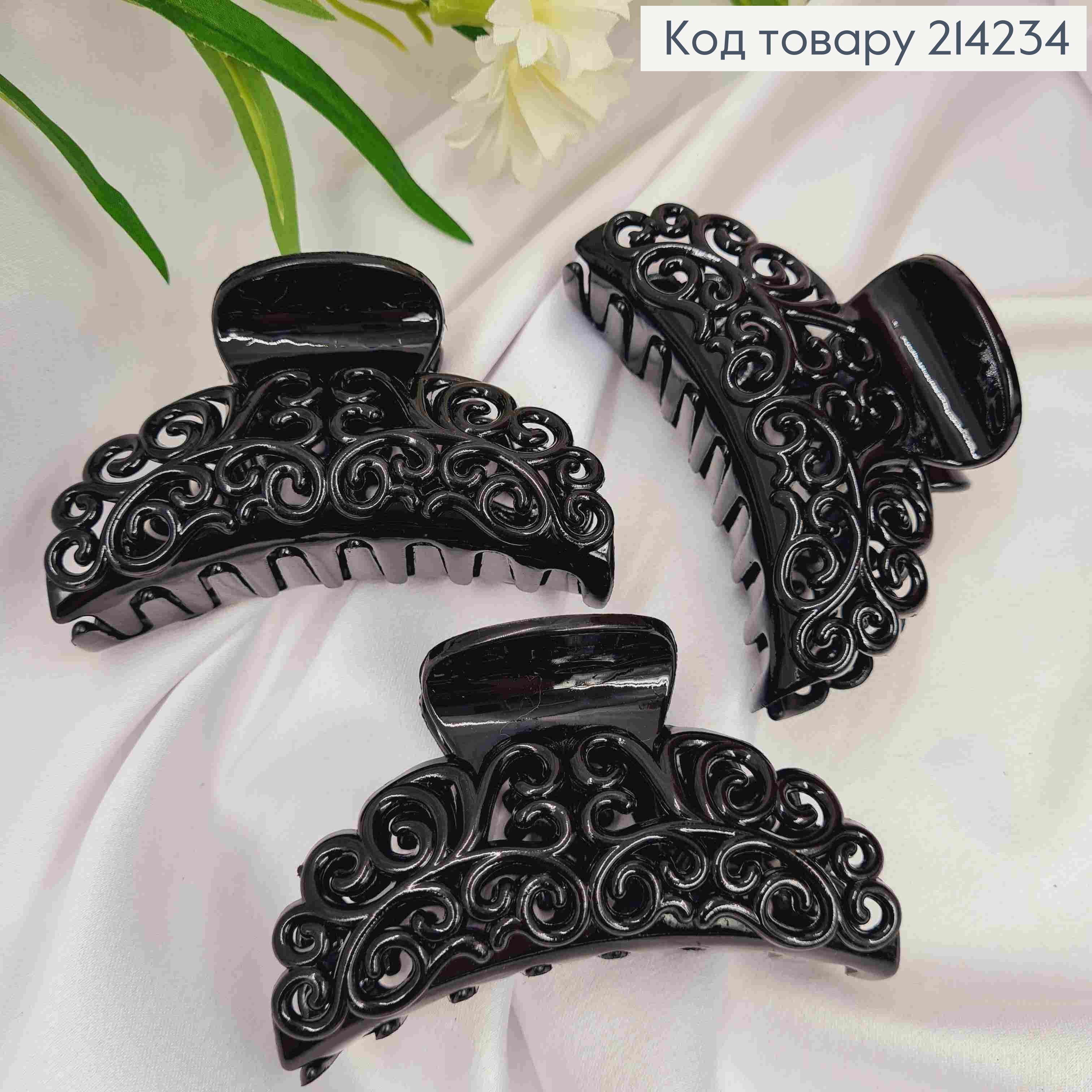 Краб пластик, глянцевый, "Ажурный", 8,5см, Черного цвета