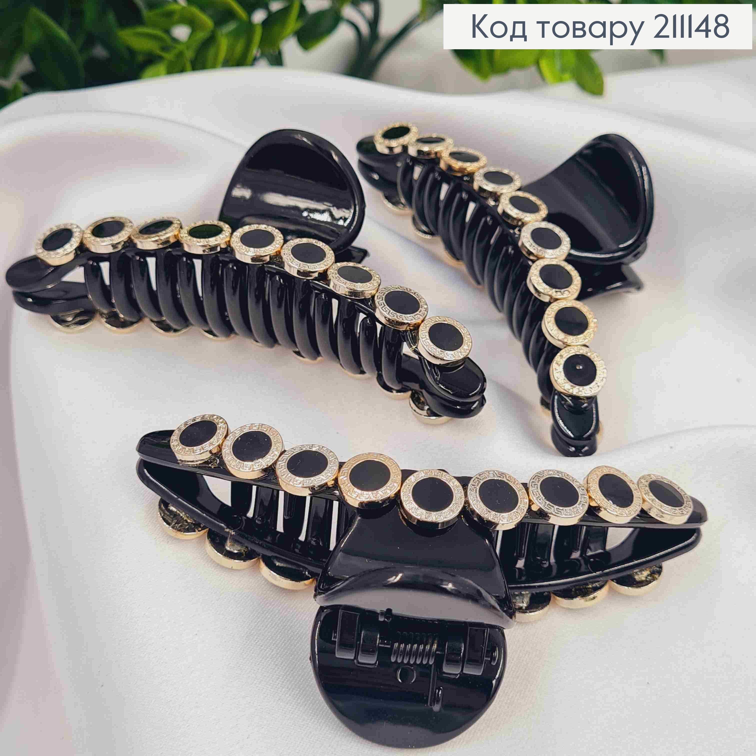 Краб пластик глянцевый, Дуга с монетками Золотого цвета и Черной эмалью, 9,5см, Черного цвета