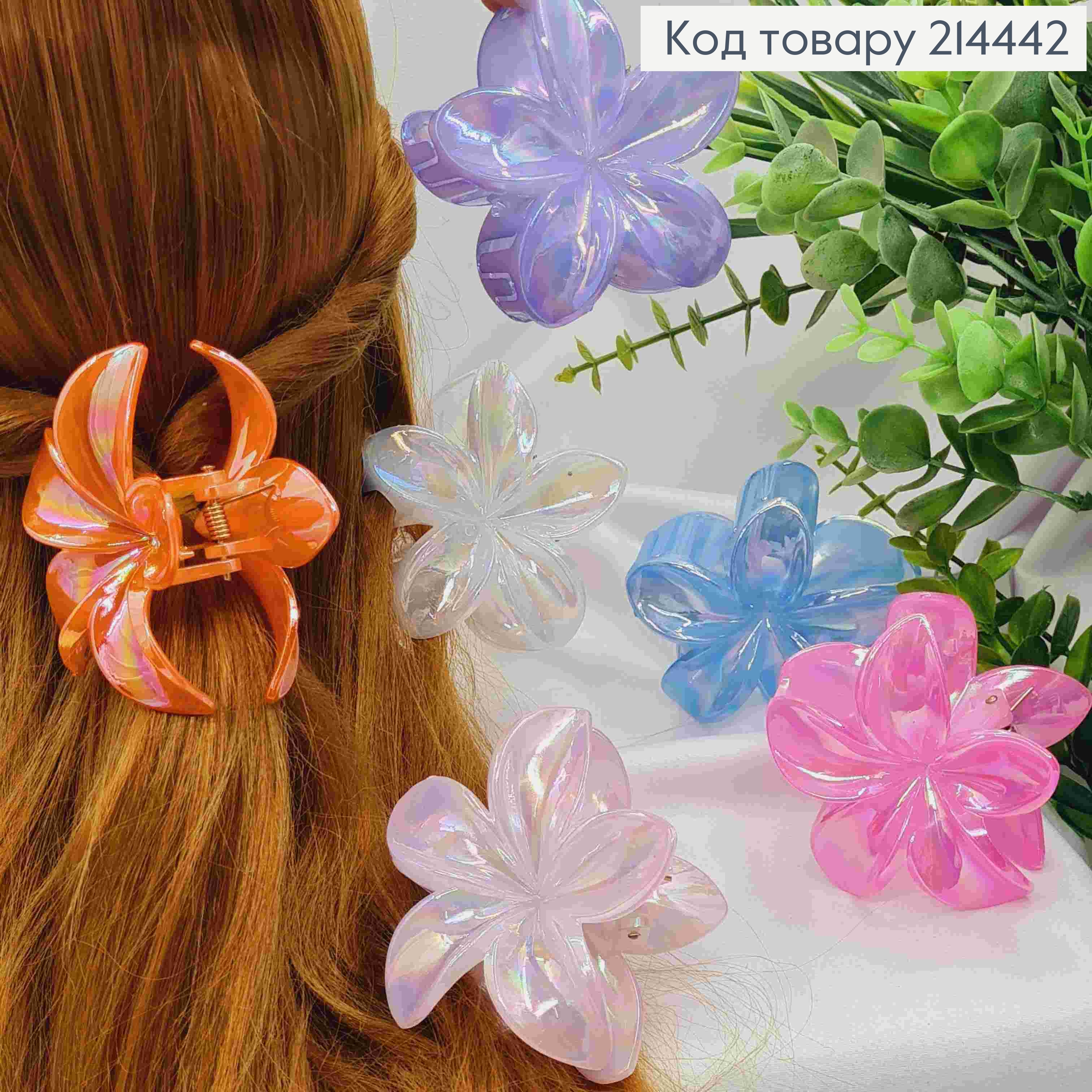 Краб пластик ГАВАЙСКИЙ цветок  ЯРКИЕ цвета, размер 5,5см, цвета в ассортименте 213351 фото