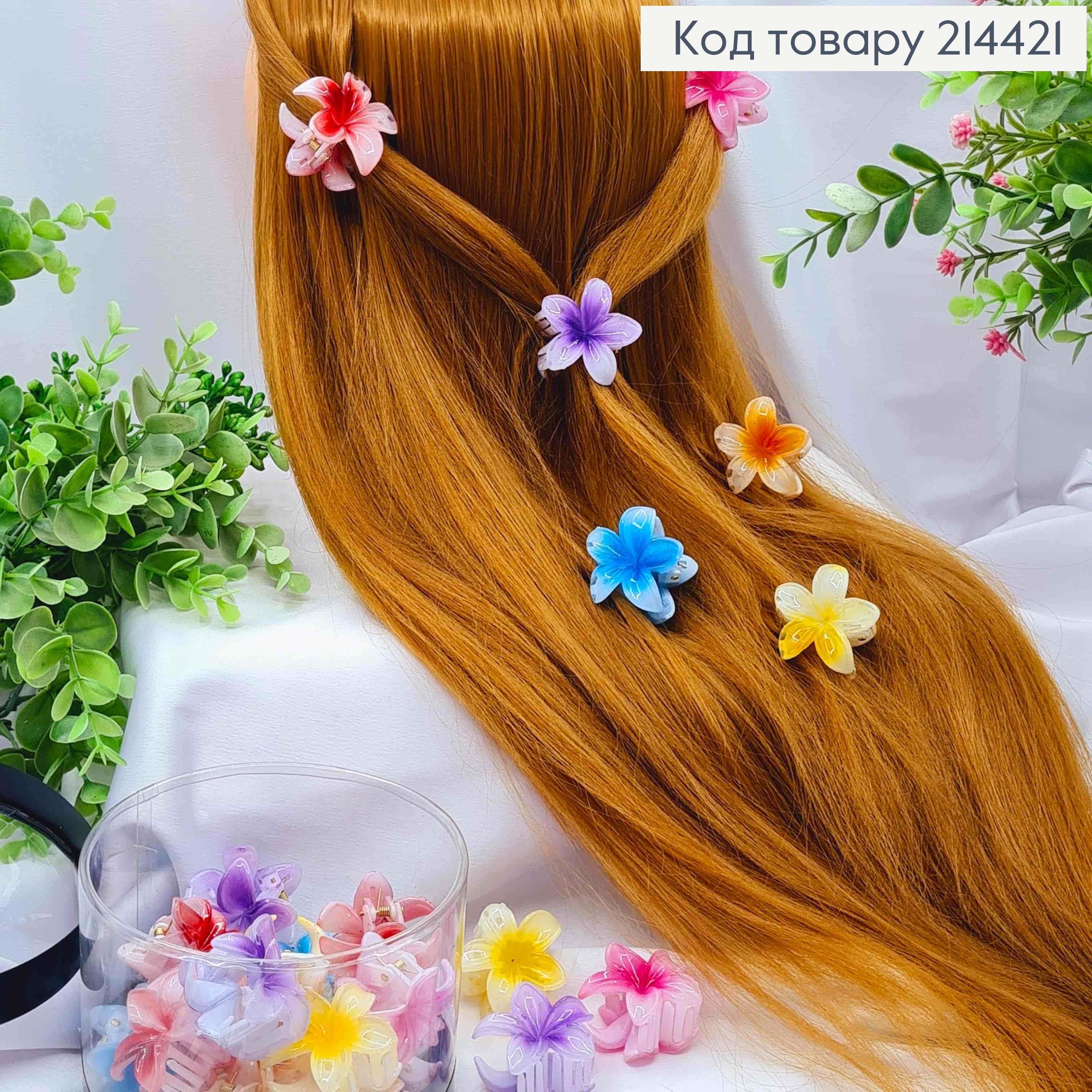 Краб пластик ГАВАЙСКИЙ цветок  ЯРКИЕ цвета, размер 5,5см, цвета в ассортименте 213351 фото