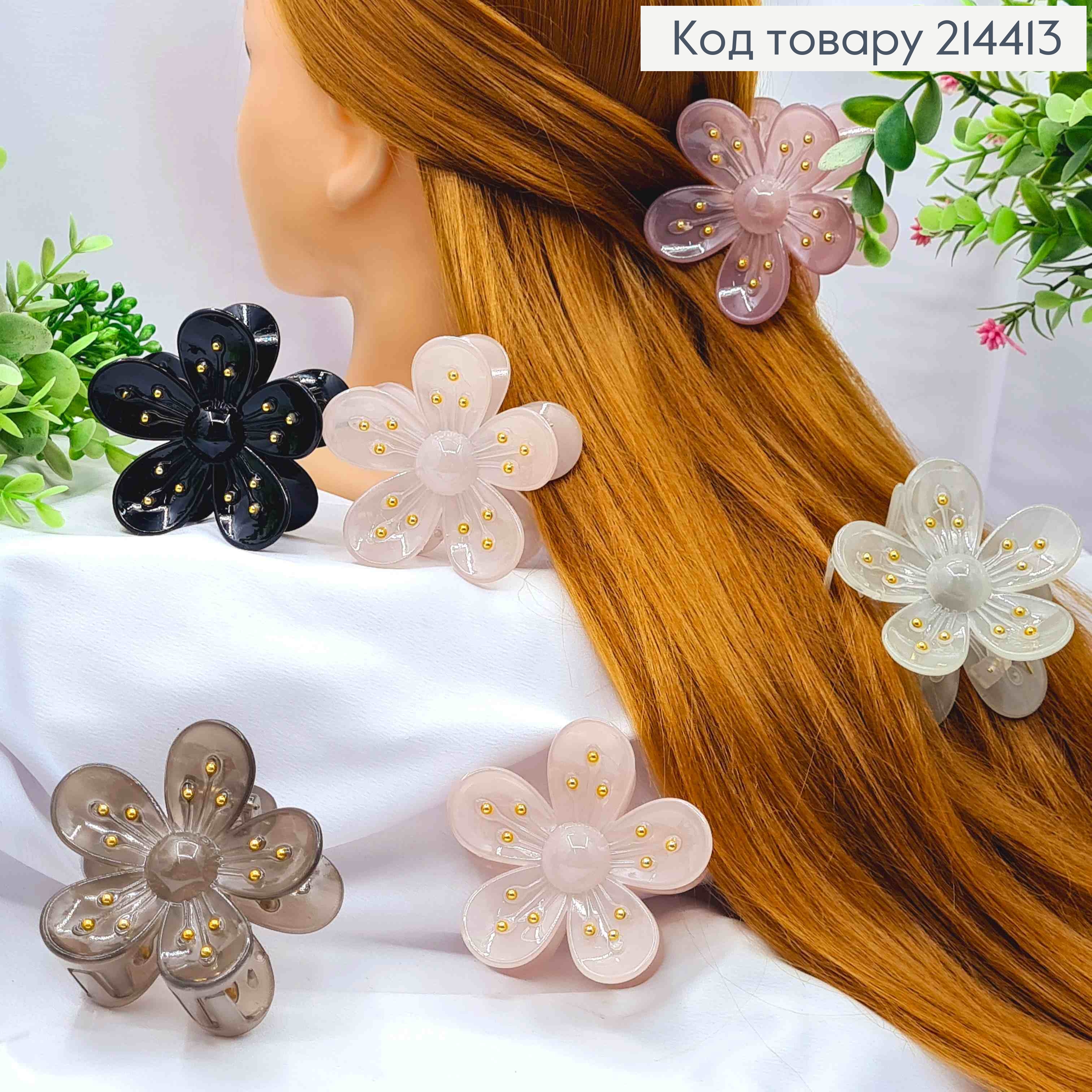 Краб пластик глянцевый "Цветок" с Золотыми бусинами, 7см, Пастельные цвета в ассортименте.