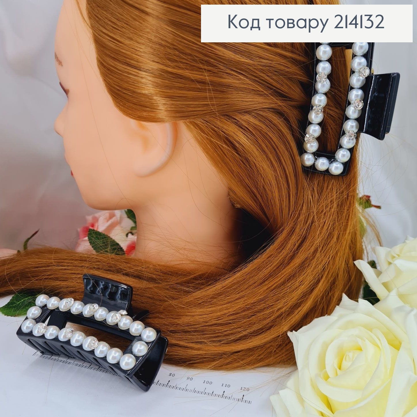 Краб пластик Прямой с жемчужинами и камнями, 1,5см чорный