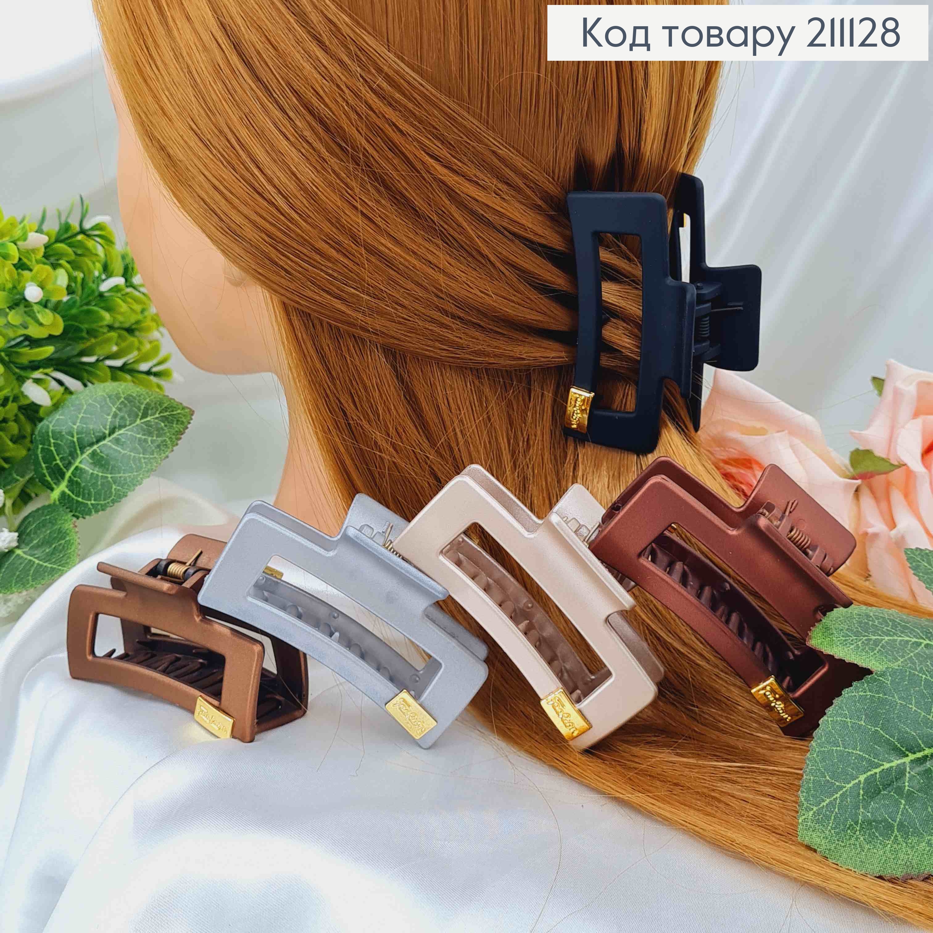 Краб пластик прямоугольный с золотой пластиночкой. 6,5см, цвета в ассорт.