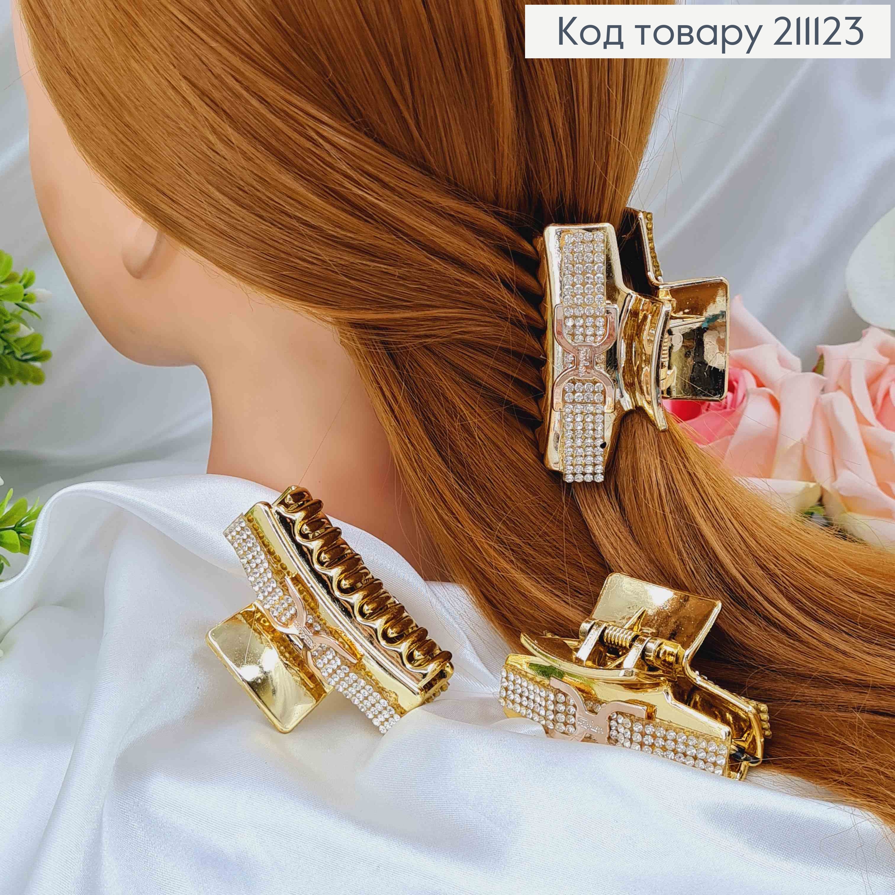 Краб пластик, золотого цвета, в камнях и с эмблемками в ассорт. продолговатый, 6см