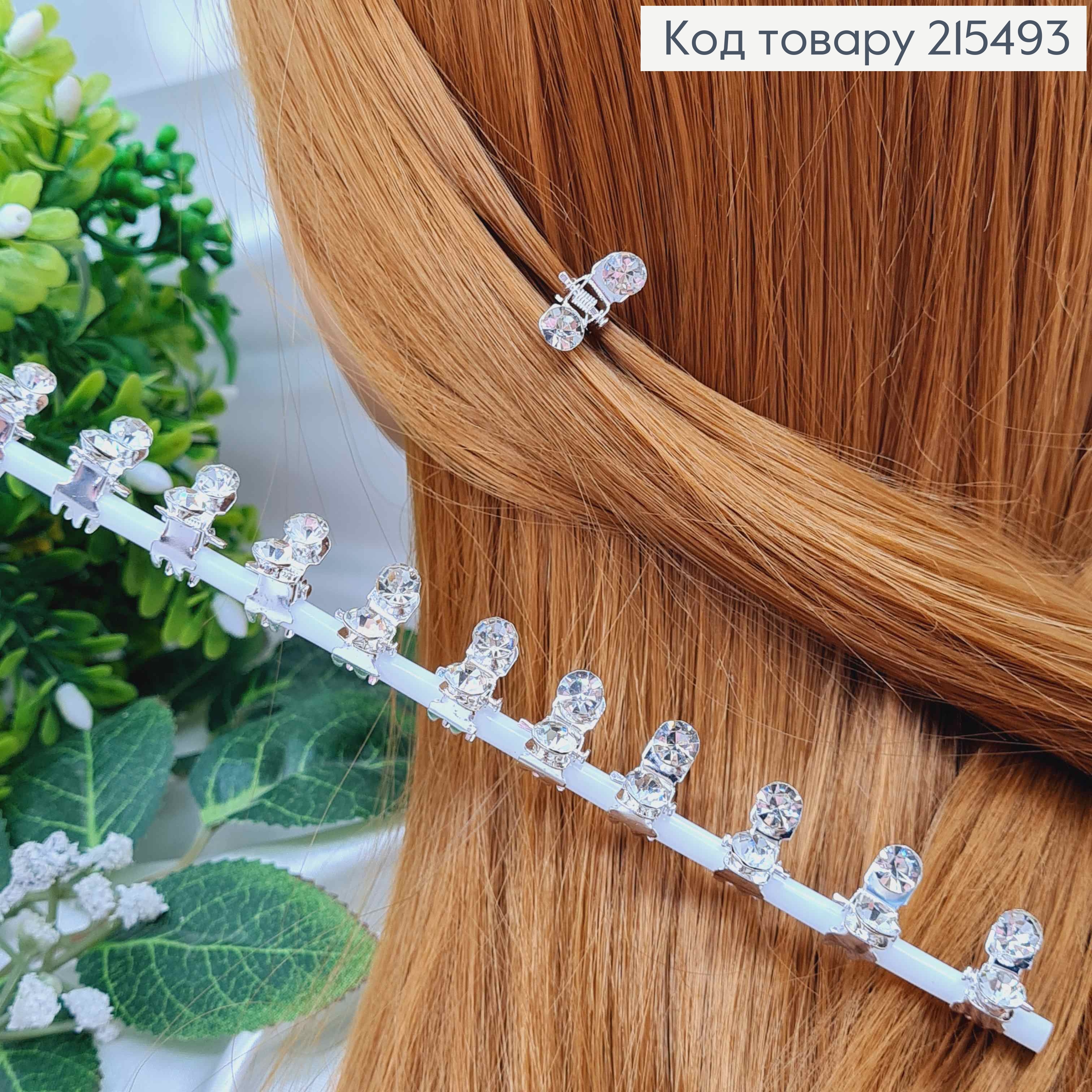 Краб металл "Петелька" украшен Блестящими камешками, 6см, Серебряного цвета 215776 фото