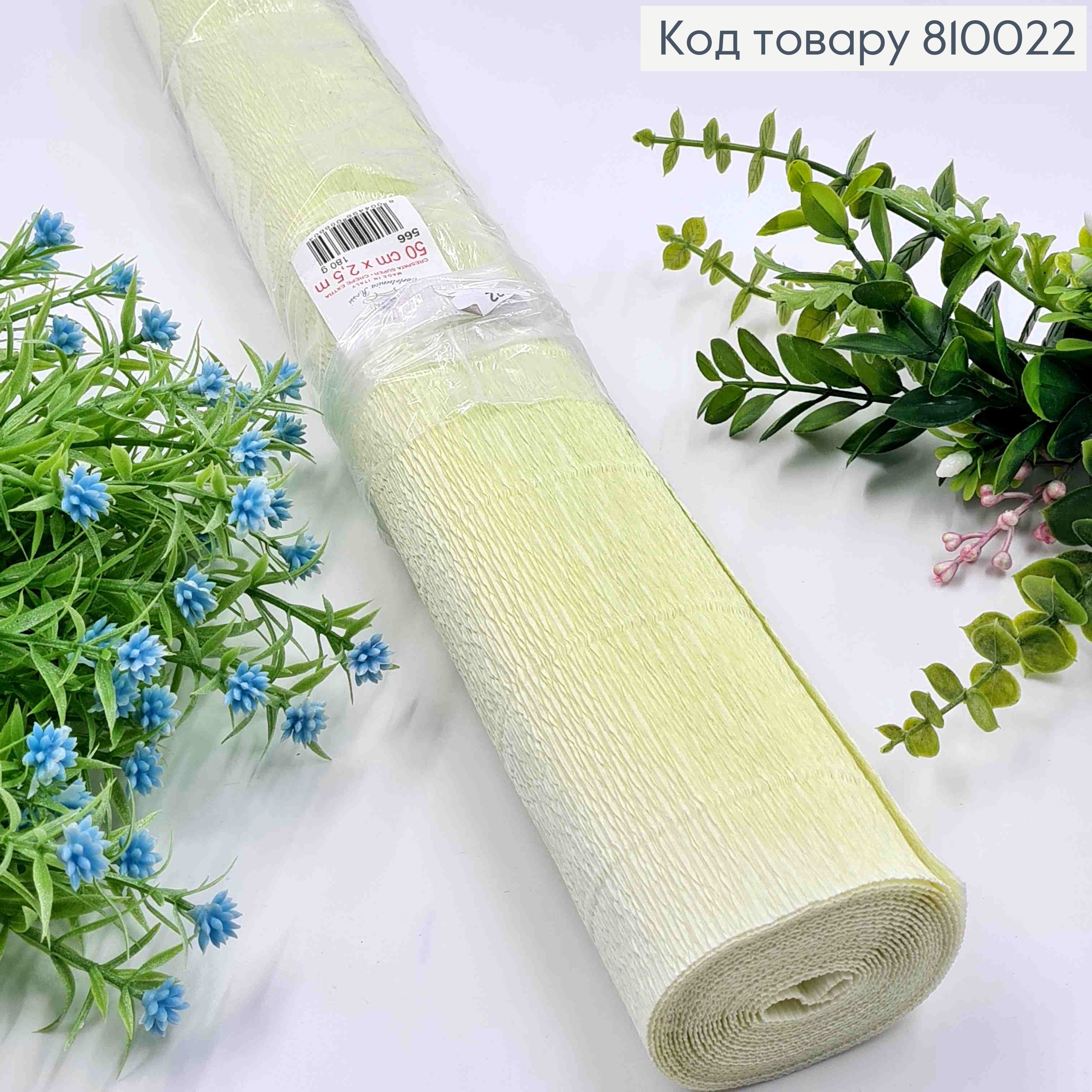 Креп-бумага гофрированная, БЛЕДНО-ЖЕЛТАЯ (цвет 566), ширина 50см, длина 2,5м, ITALY