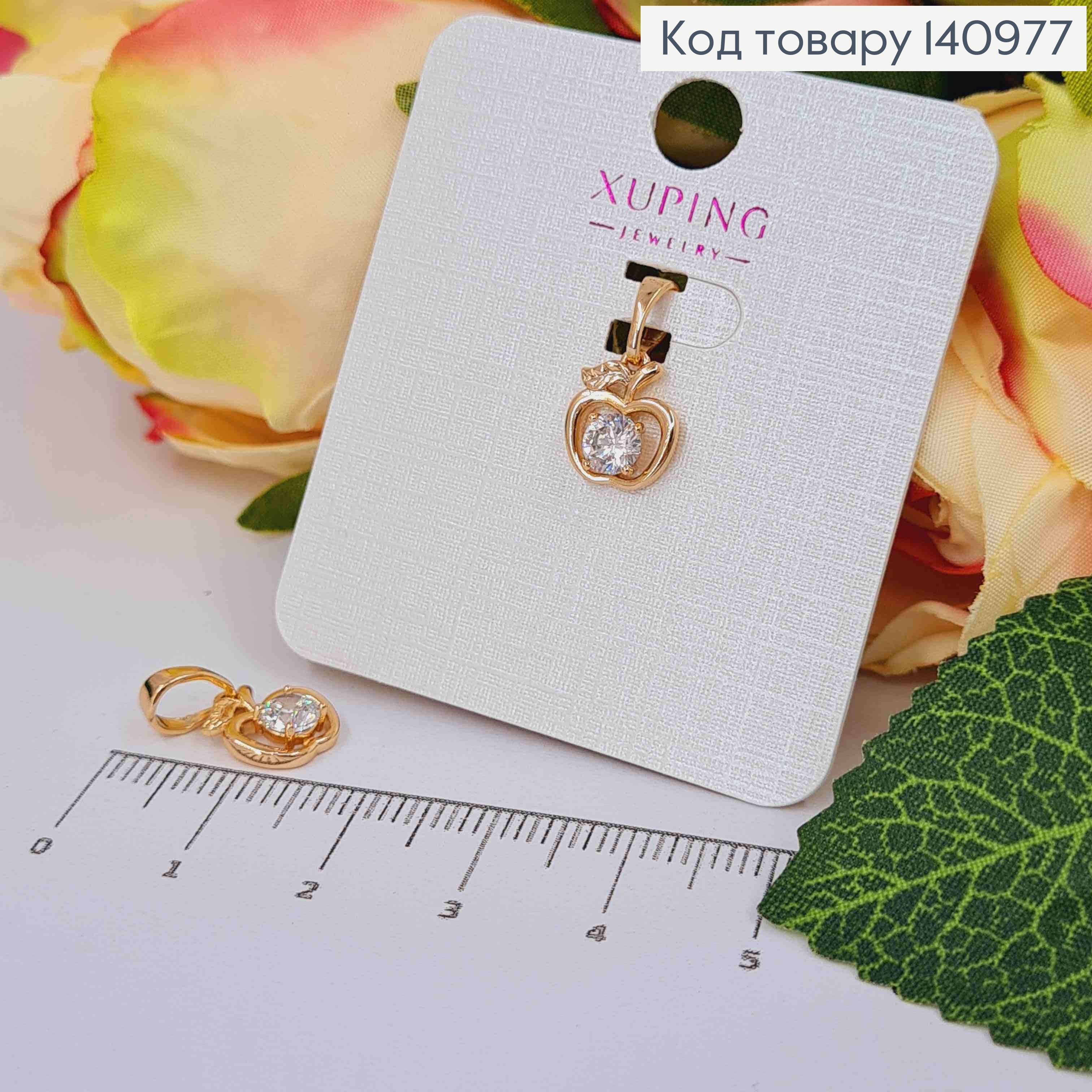 Кулон "Яблоко" с Блестящими камнями, 1 см, Xuping 18K