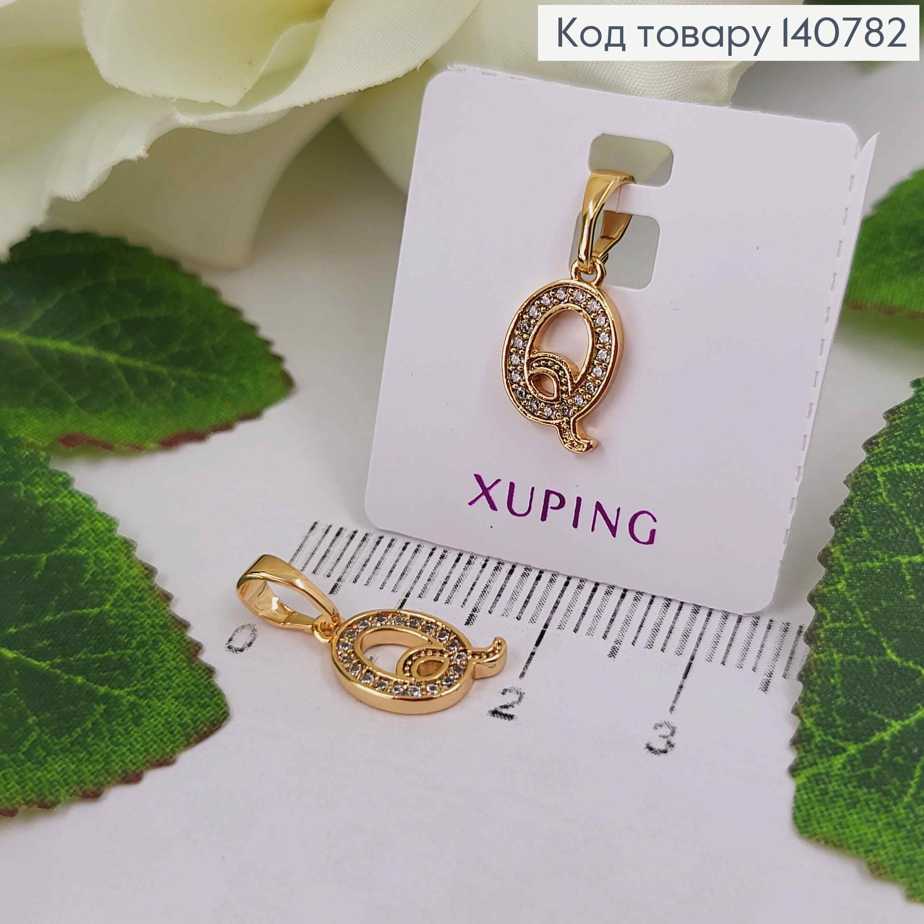 Кулон, Буква "Q" в камешках, 1см, Xuping 18K