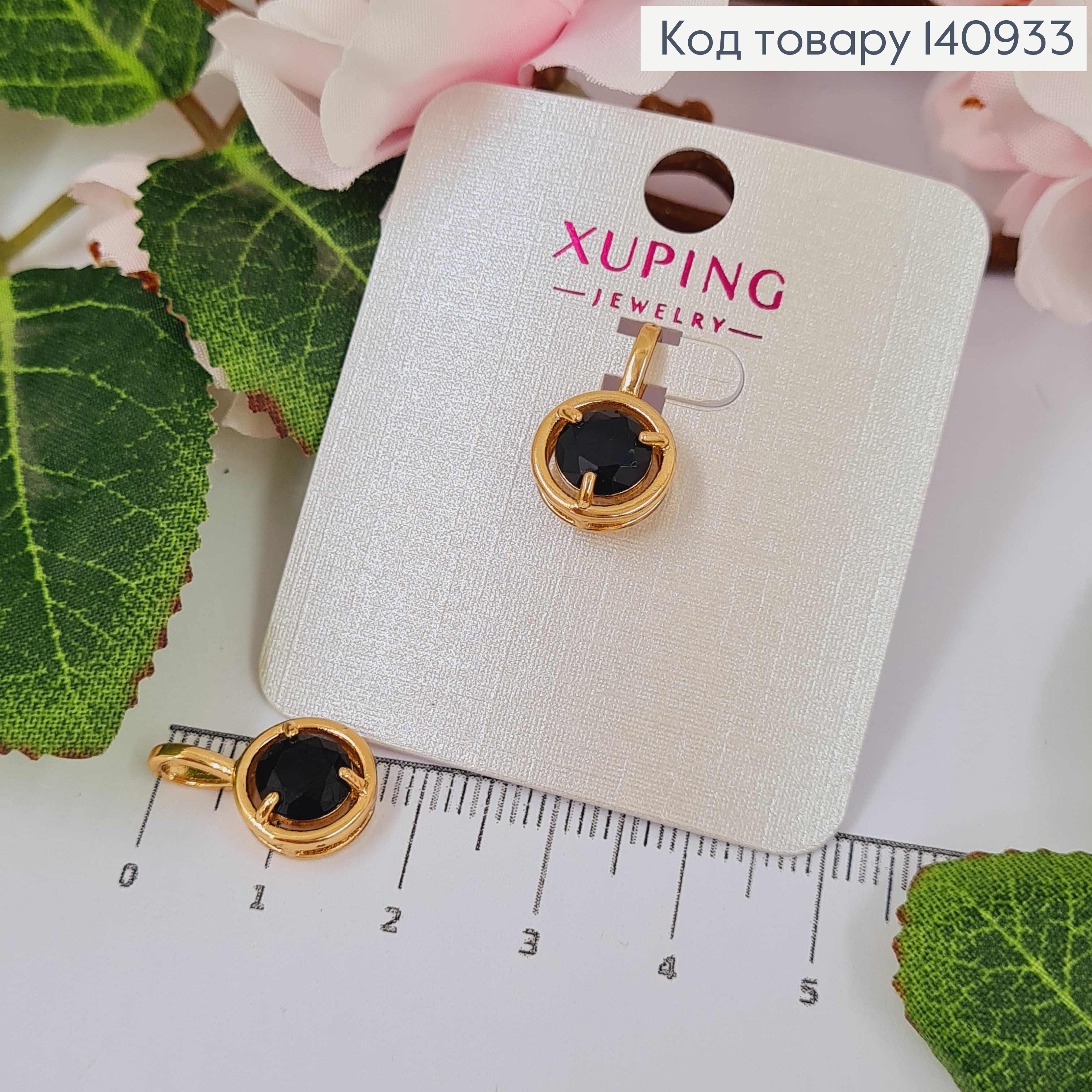 Кулон Черный камешек в оправе, 1см, Xuping 18K