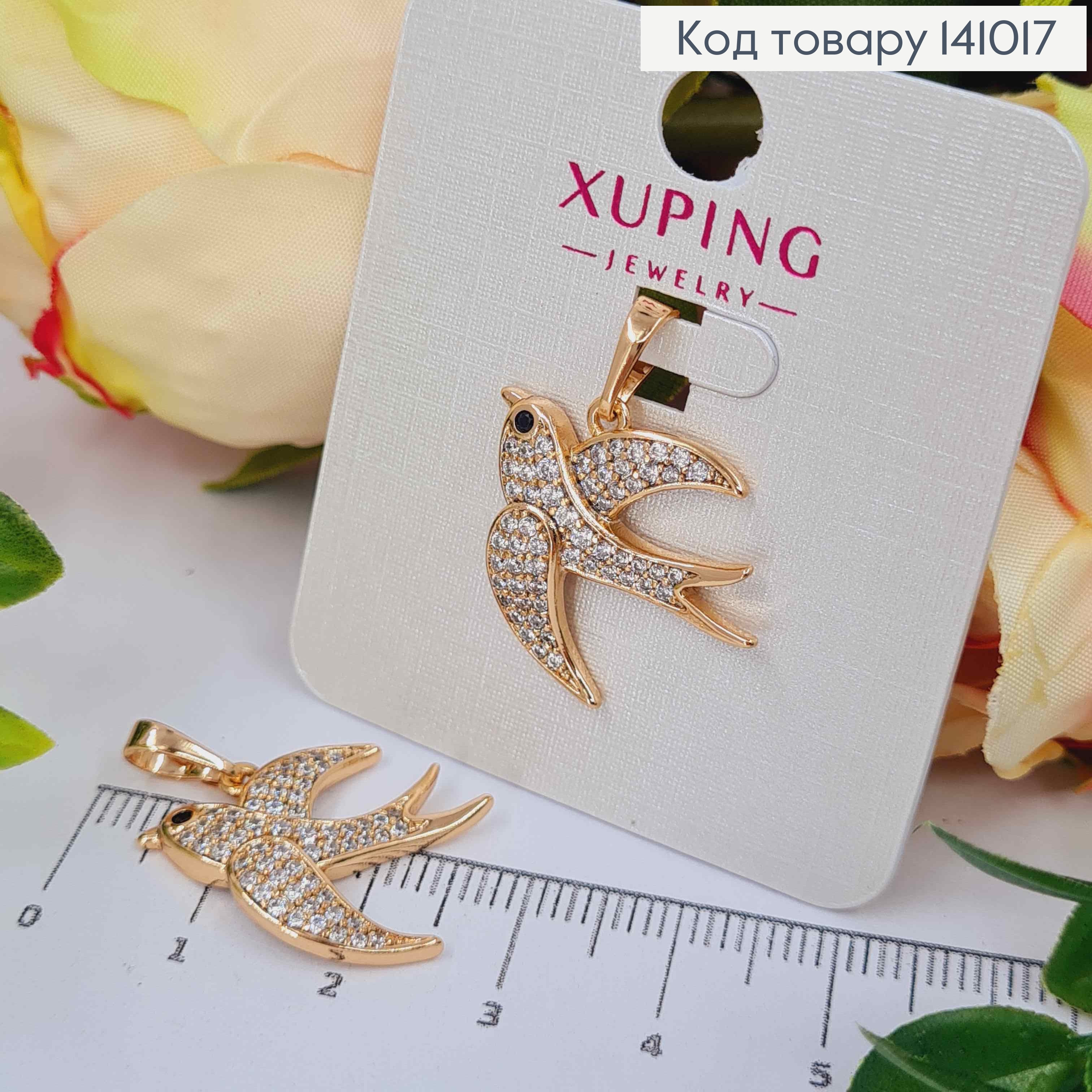 Кулон "ЛАСТОЧКА" украшен Блестящими камешками, 2см, Xuping 18K