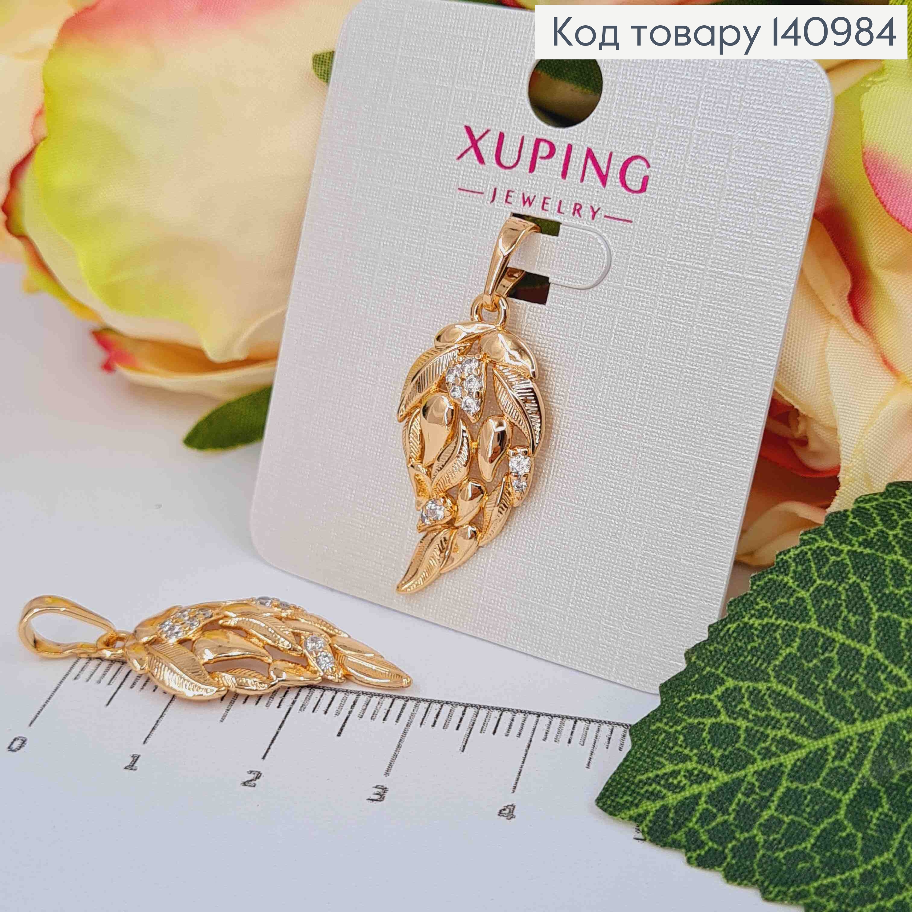 Кулон "Листочки" украшен камешками, 2,7см, Xuping 18K.