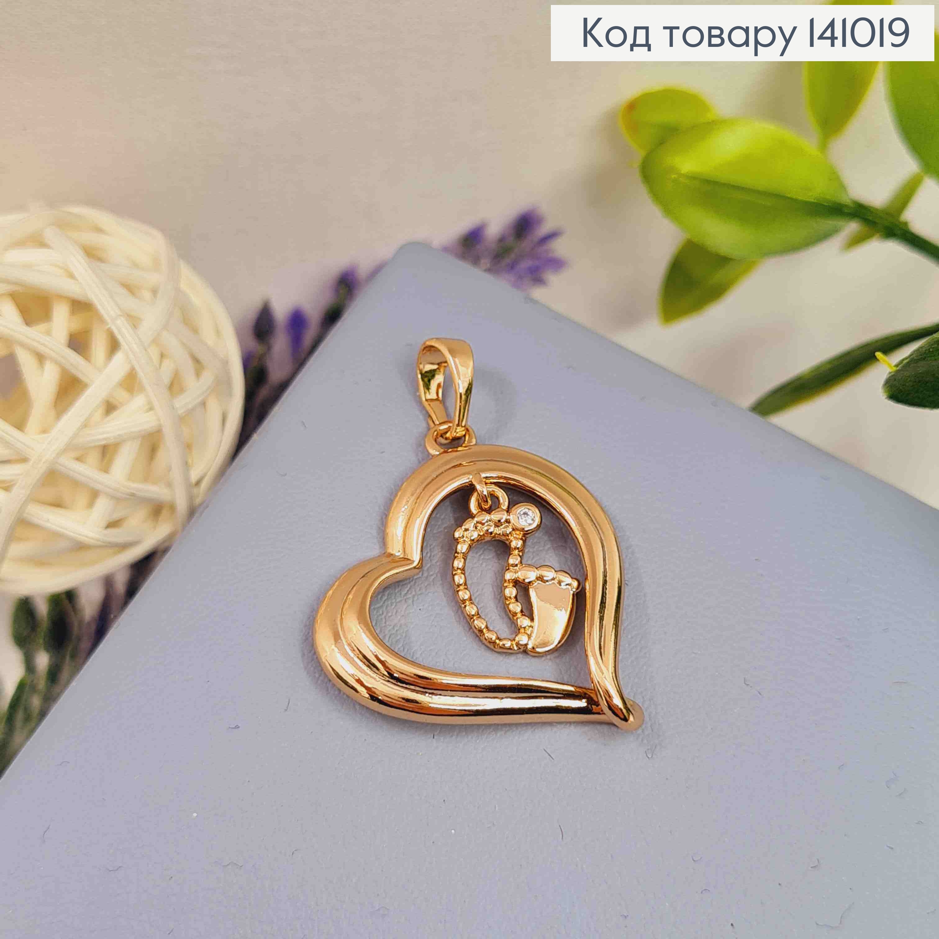 Кулон "Мать с Ребенком" в Сердце с Блестящими камешками, размер 2см, Xuping 18K 141177 фото
