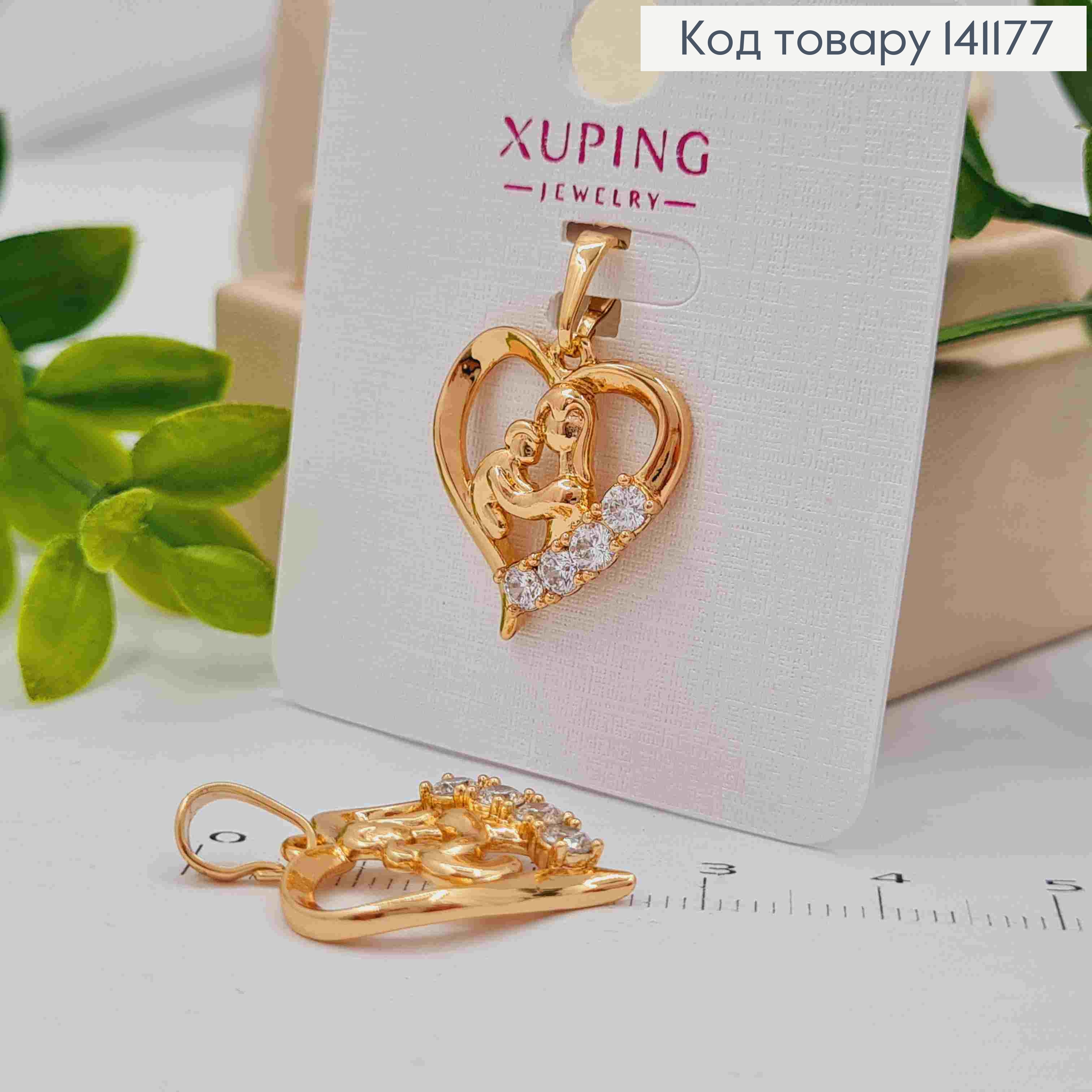 Кулон "Мать с Ребенком" в Сердце с Блестящими камешками, размер 2см, Xuping 18K