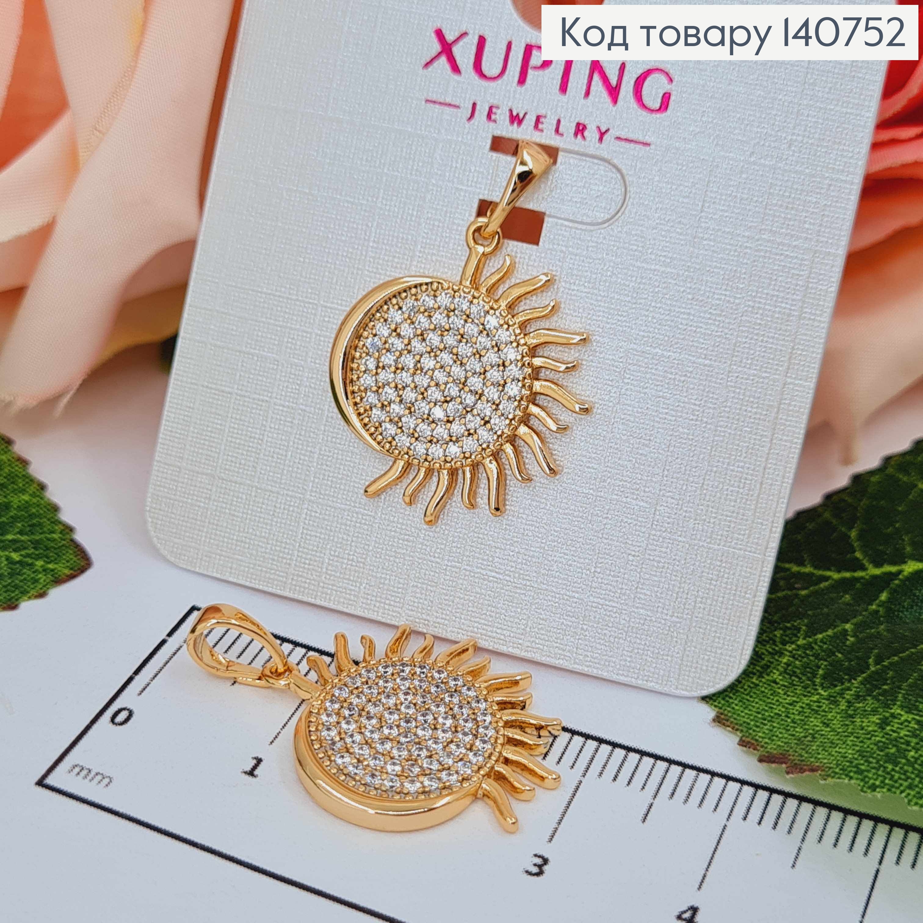 Кулон, "Ночь и День" с камешками, 2 см, Xuping 18K