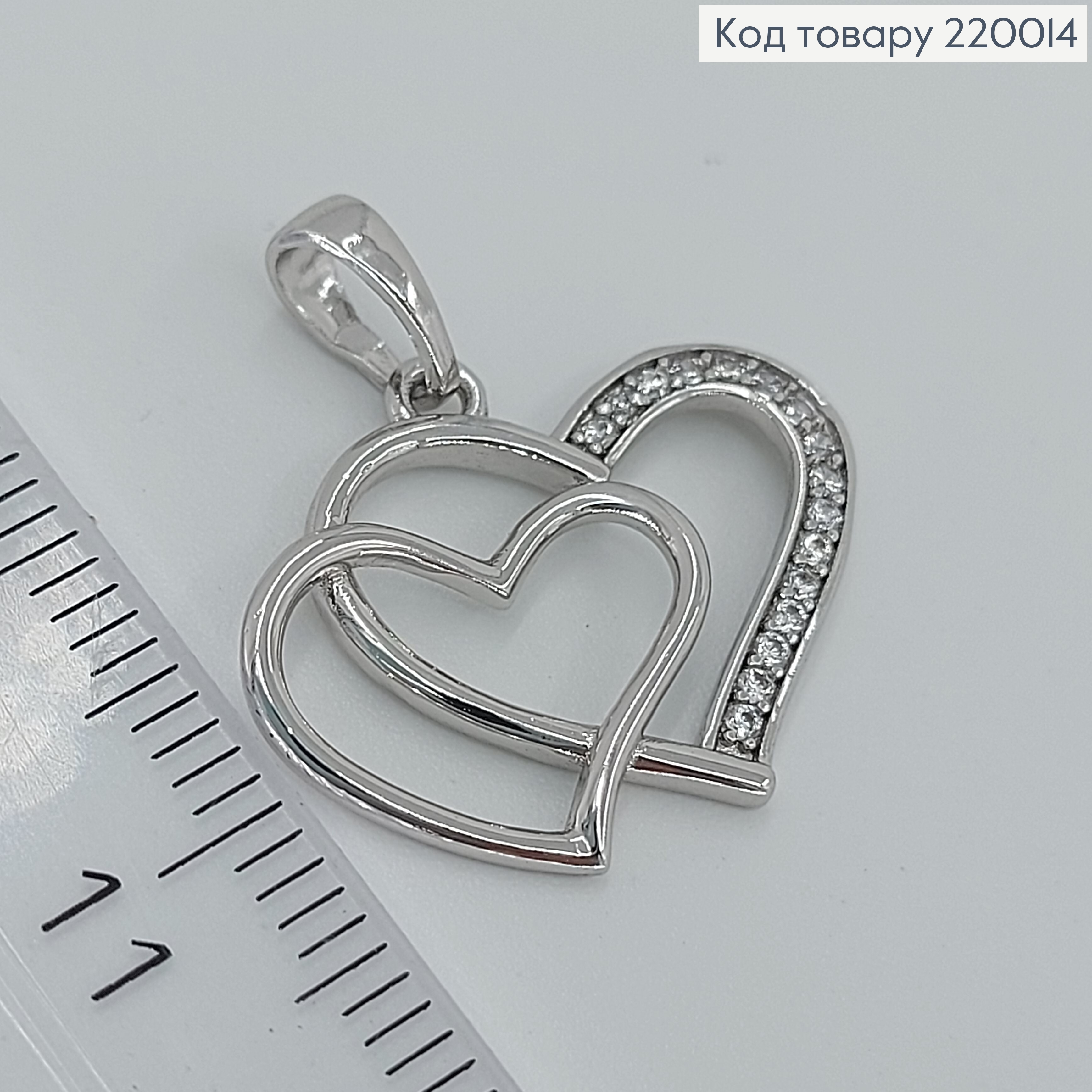 Кулон родованный "СЕРДЦЕ" украшен Блестящими камешками, 1,7см, Xuping 220333 фото