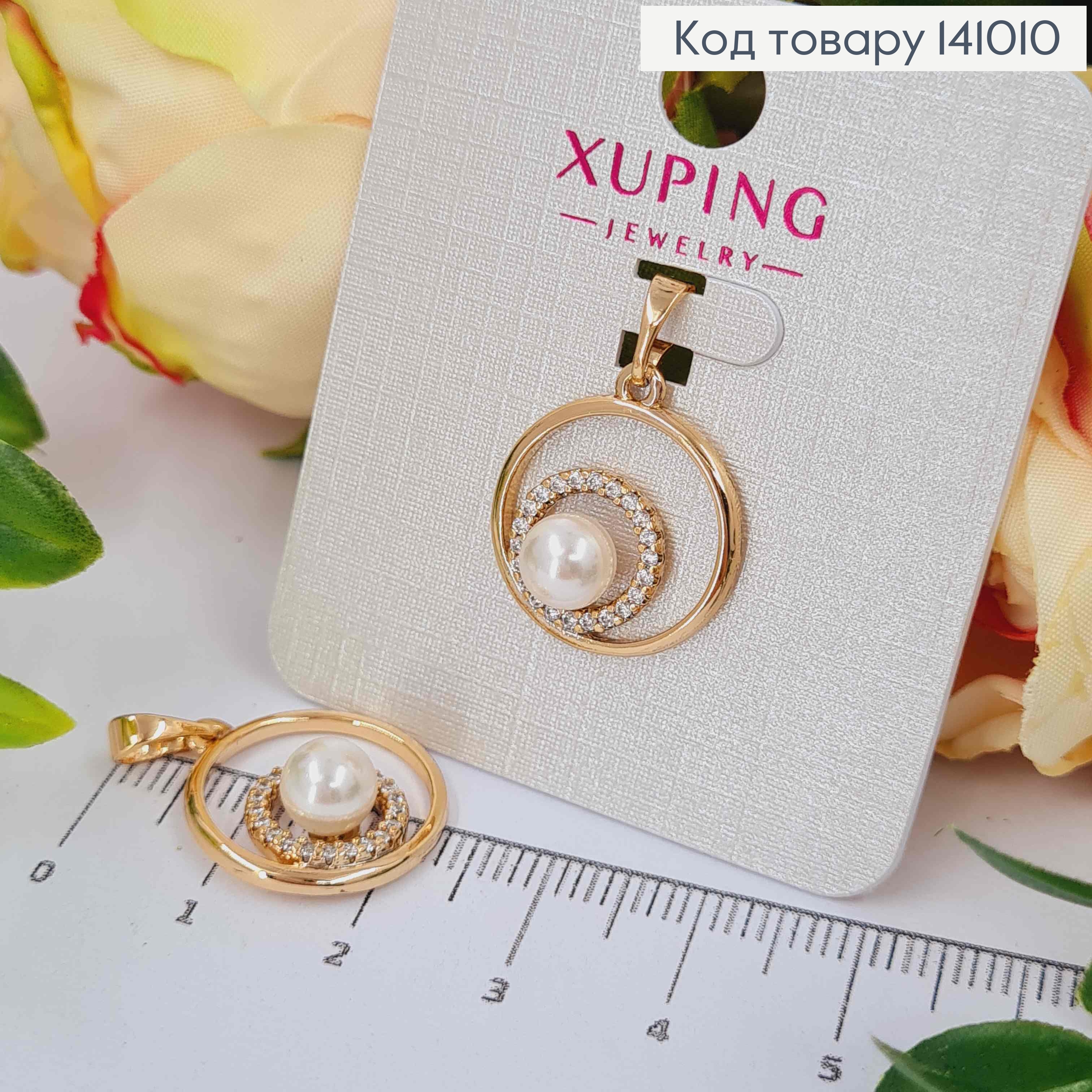 Кулон с жемчужкой и блестящими камешками, размер 1,3см, Xuping 18K. 141168 фото