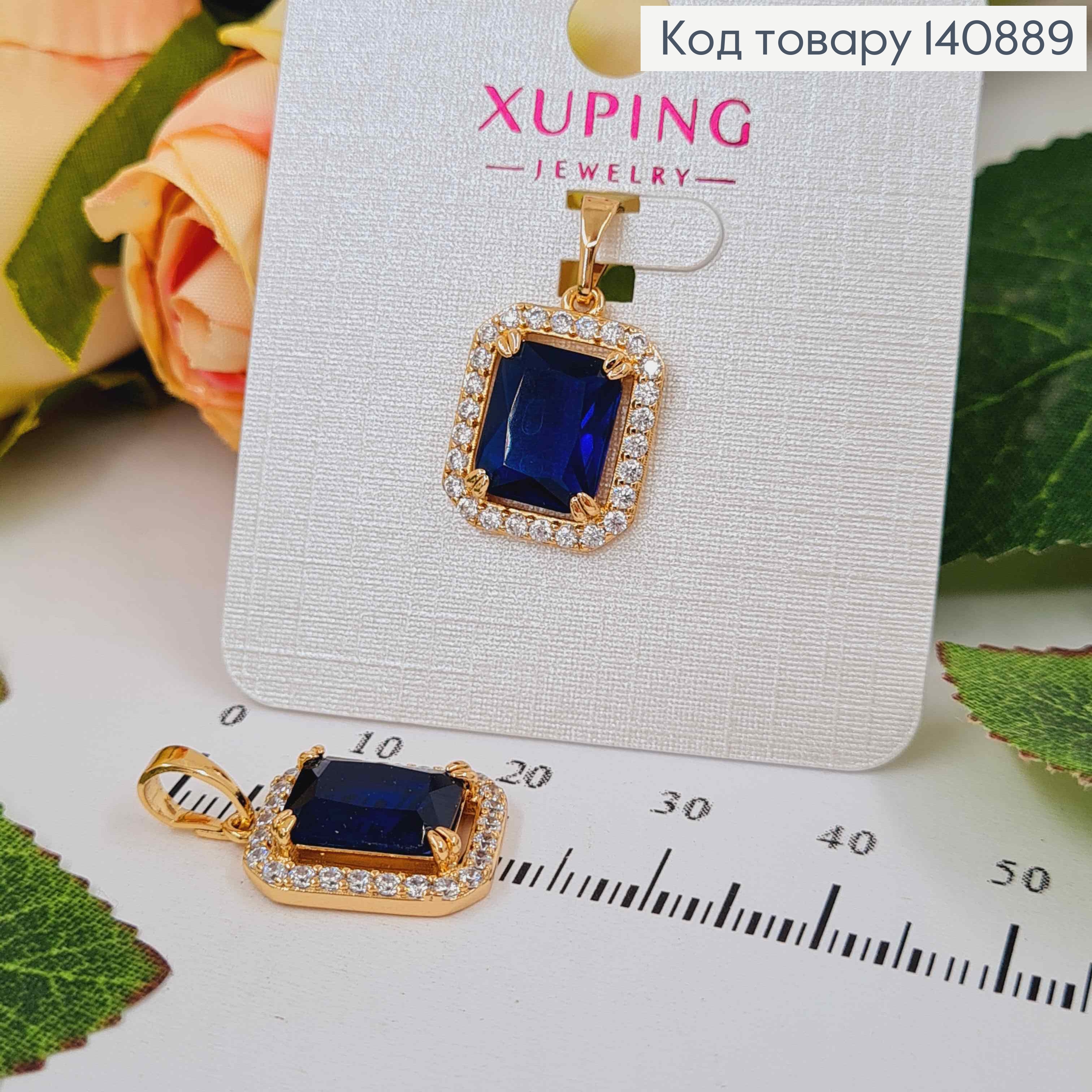Кулон подвеска с Синим прямоугольным камешком, 1,5см, Xuping 18К.