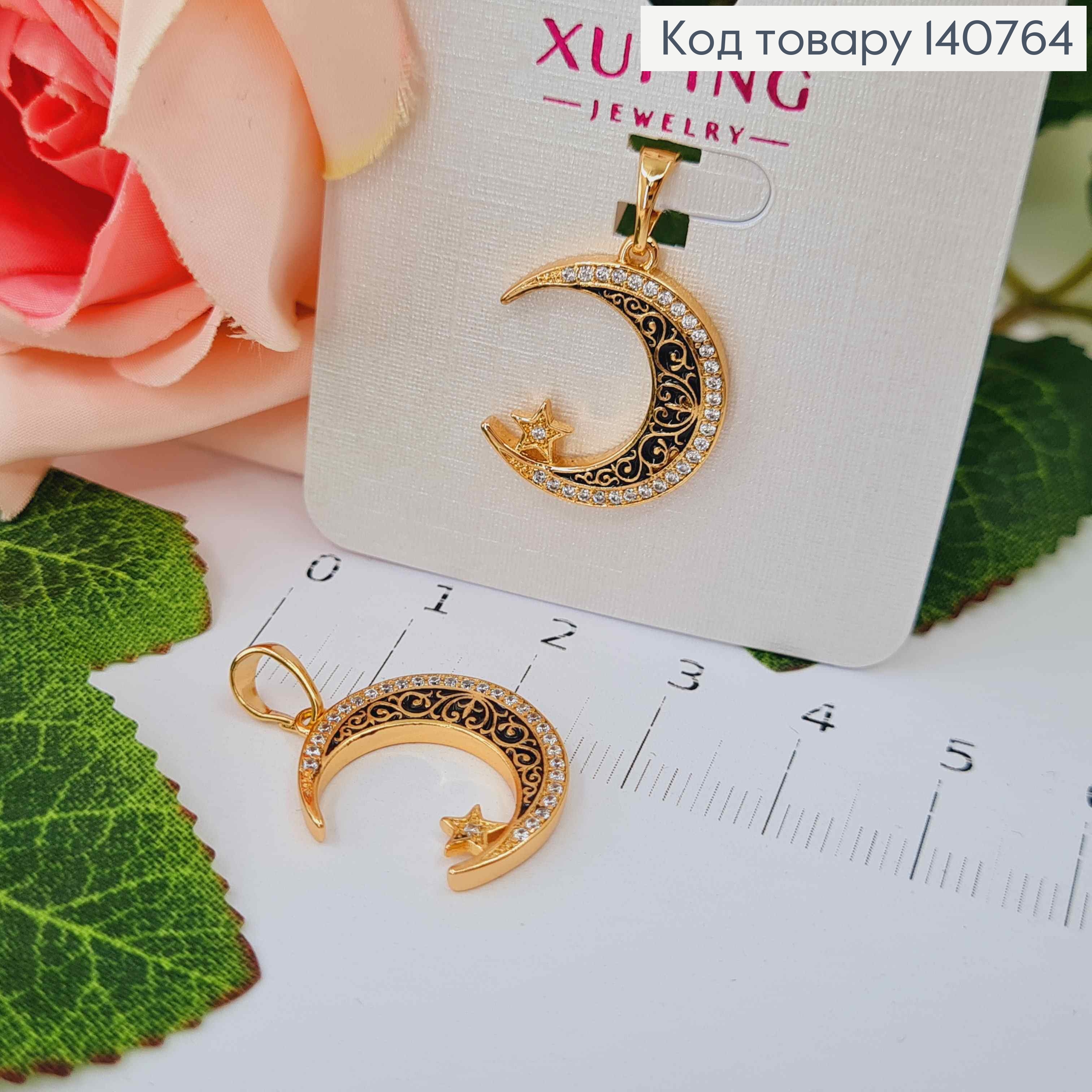 Кулон "Полумесяц" со звездочкой, черный, в камнях, 2см, Xuping 18K