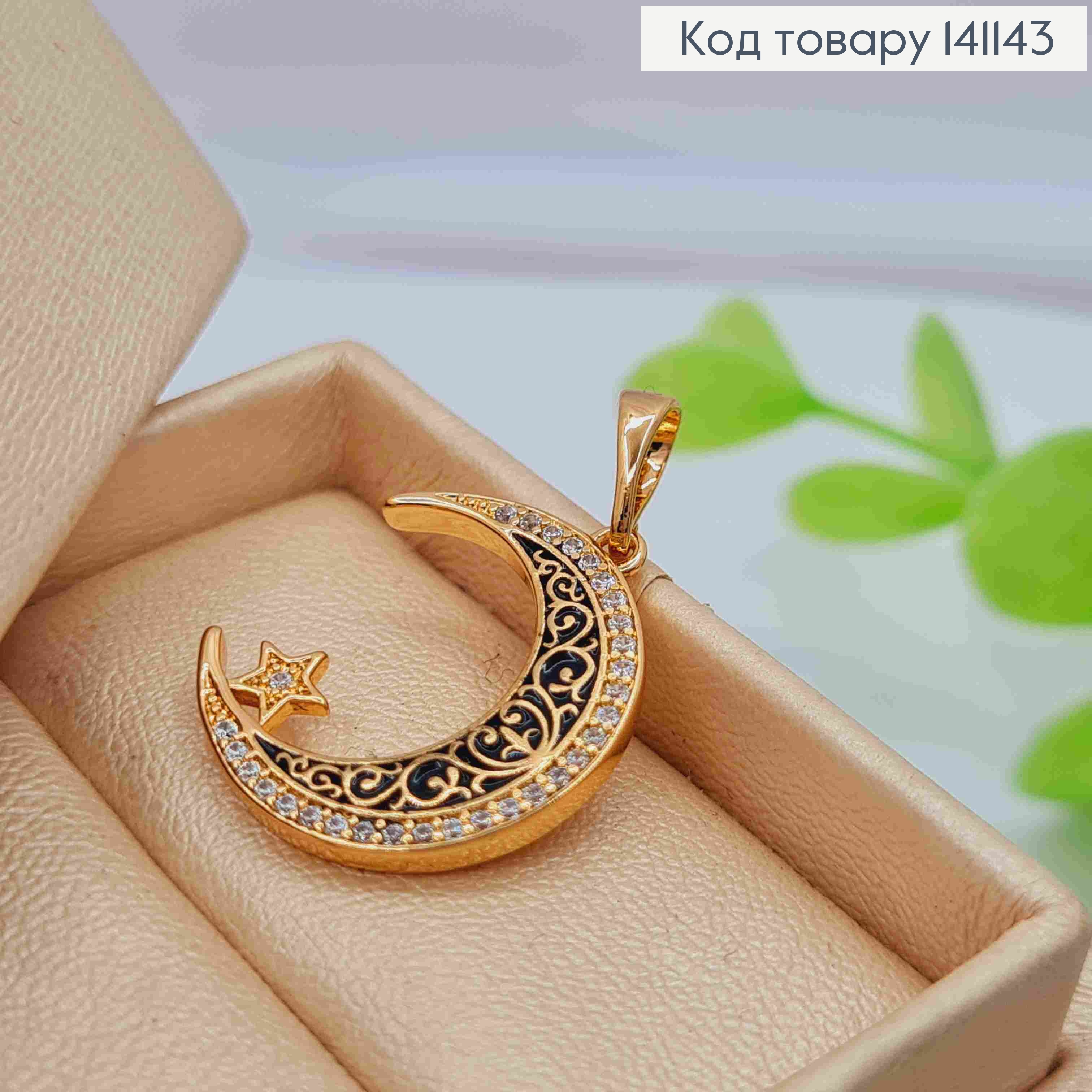 Кулон "Полумесяц" со Звездочкой, черный, в камнях, 2см, Xuping 18K