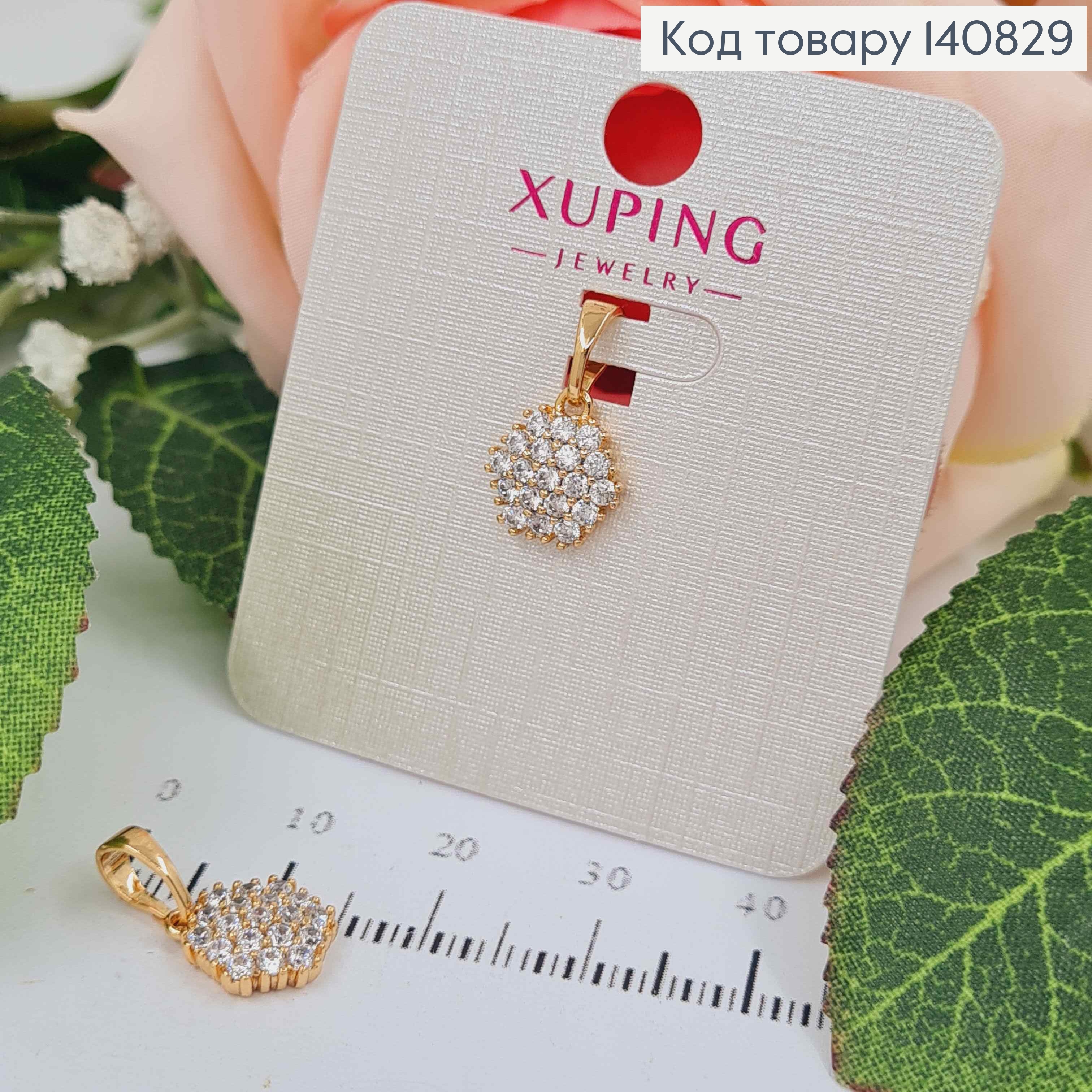 Кулон, плоский шестигранник в камешках, 1см Xuping 18К.