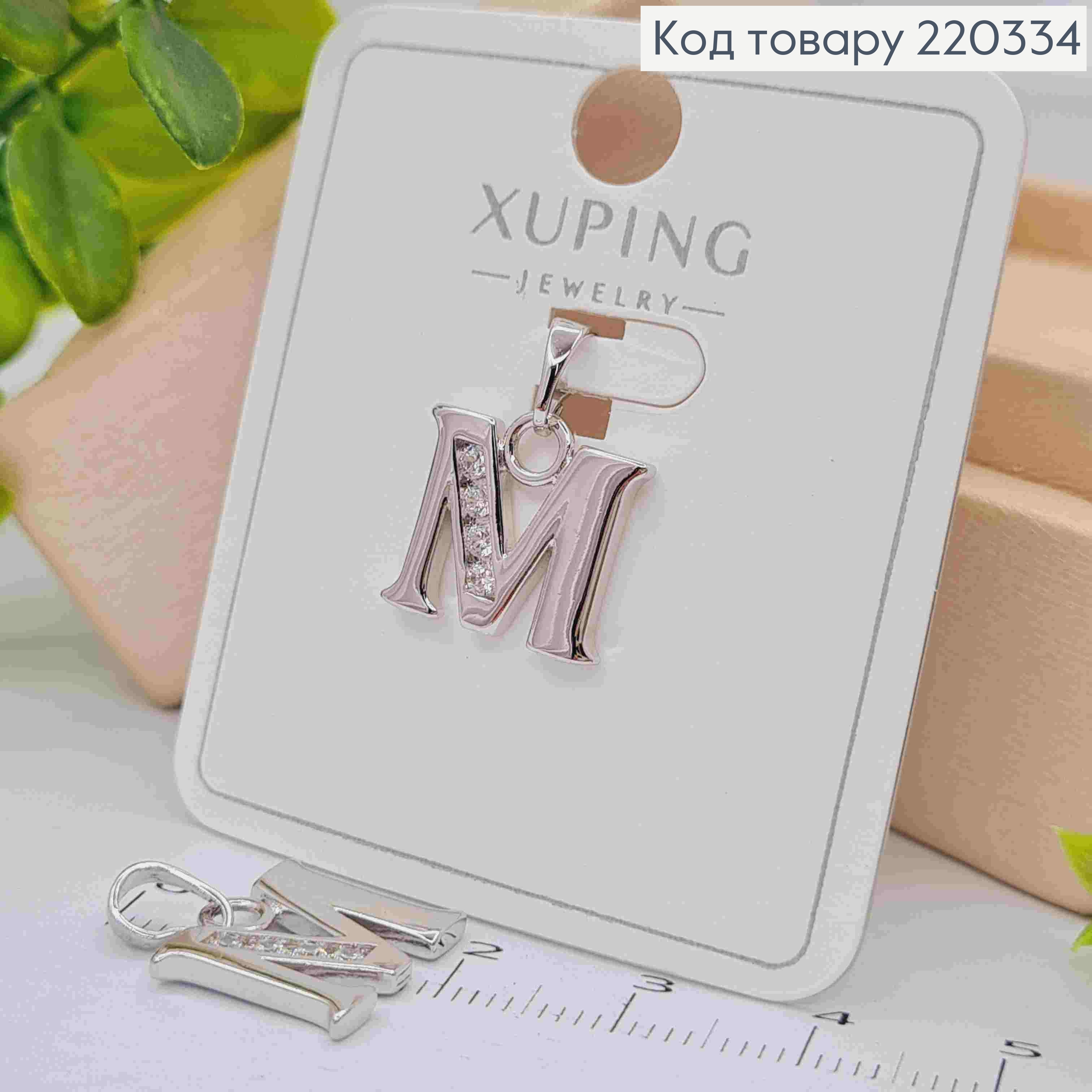 Кулон родованный буква "М" украшен блестящими камешками, 1,3см, Xuping