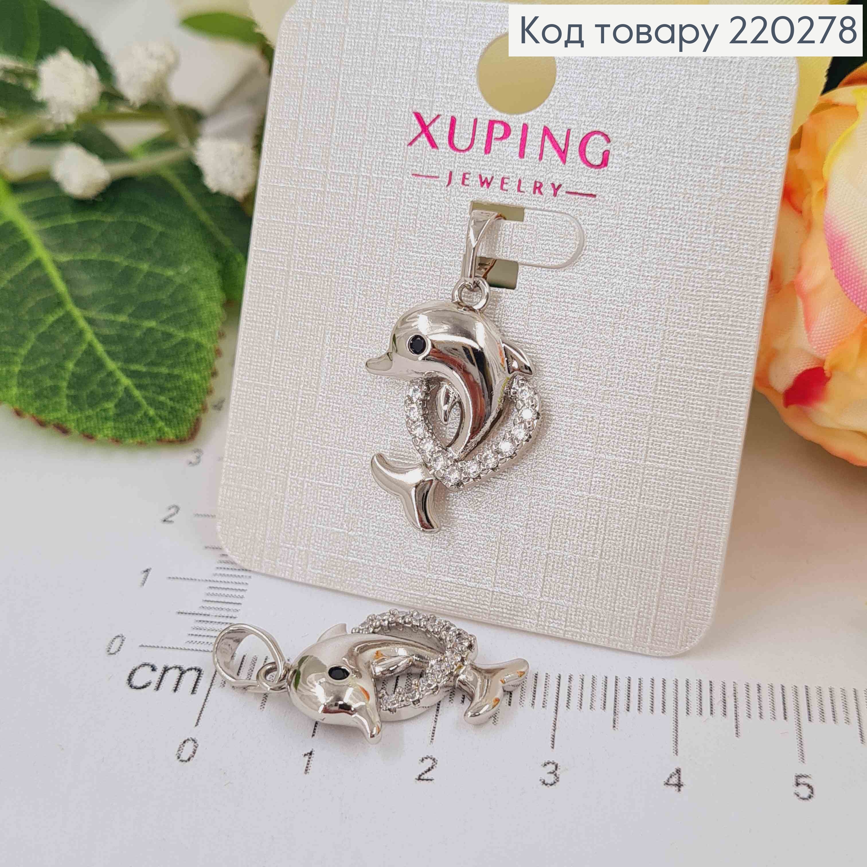 Кулон родованный, "Дельфинчик" с камешками, 2см, Xuping