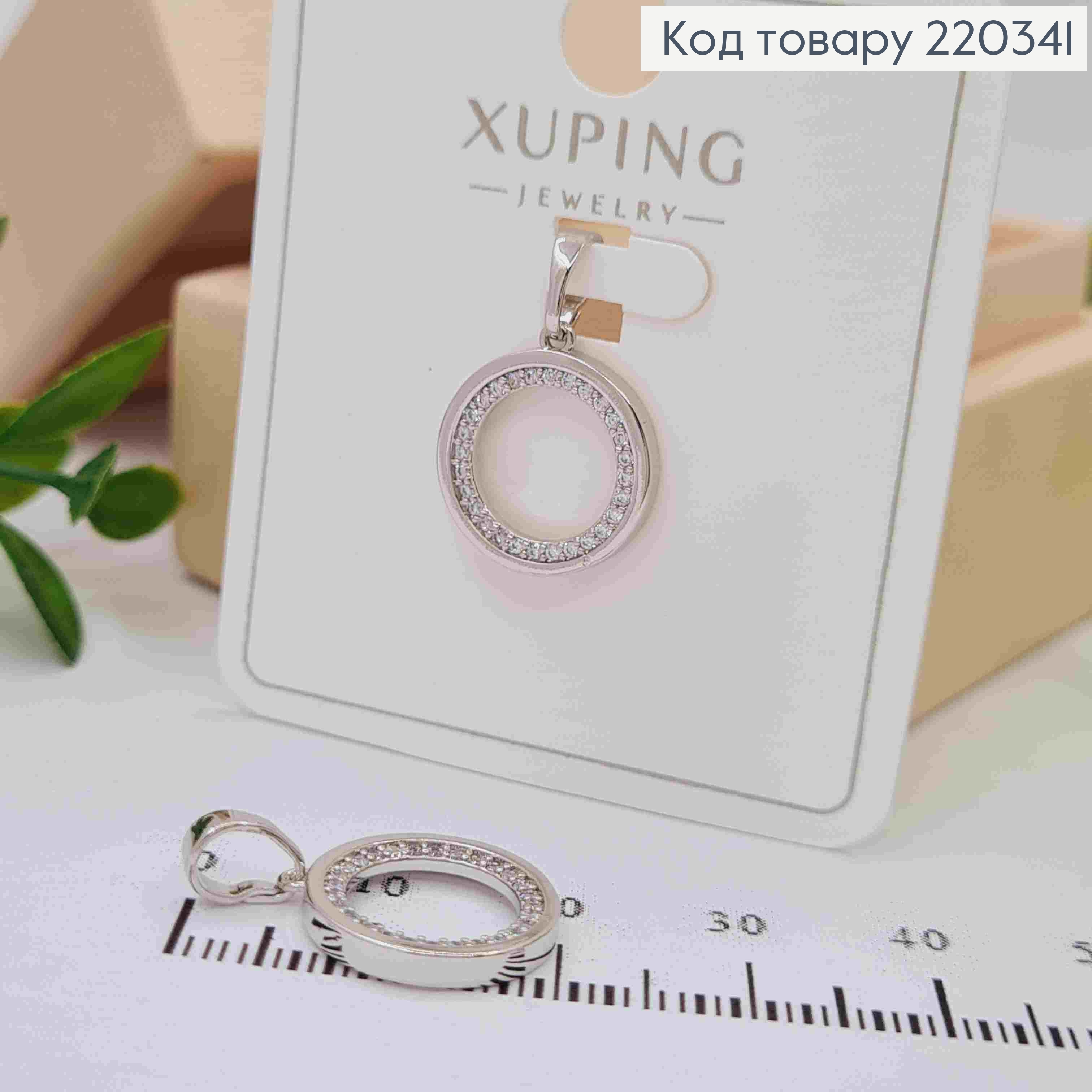 Кулон родованный, круглый Блестящий камень, 1см, Xuping 220329 фото