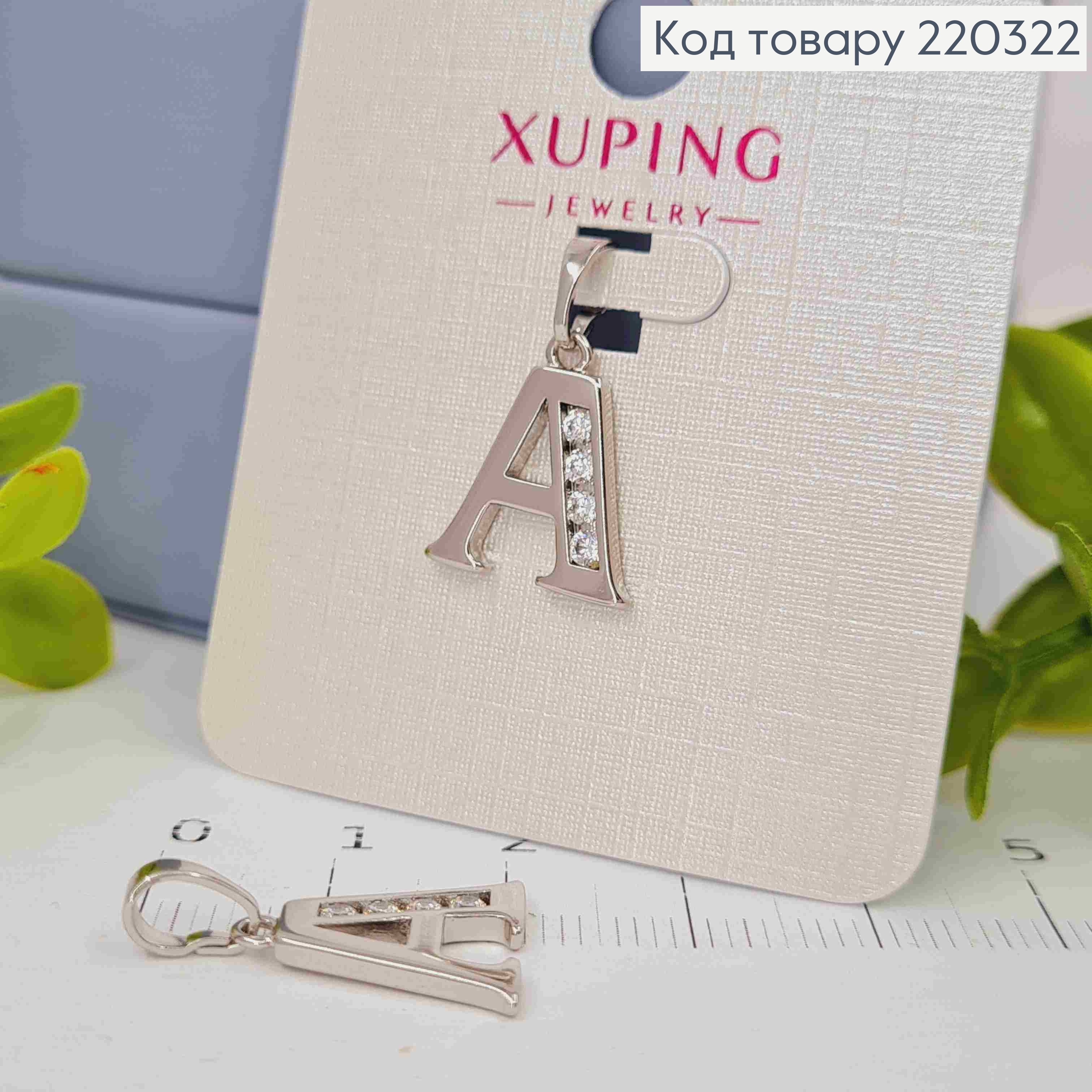 Кулон родованный, буква "А" с Блестящими камешками, 1,5см, Xuping