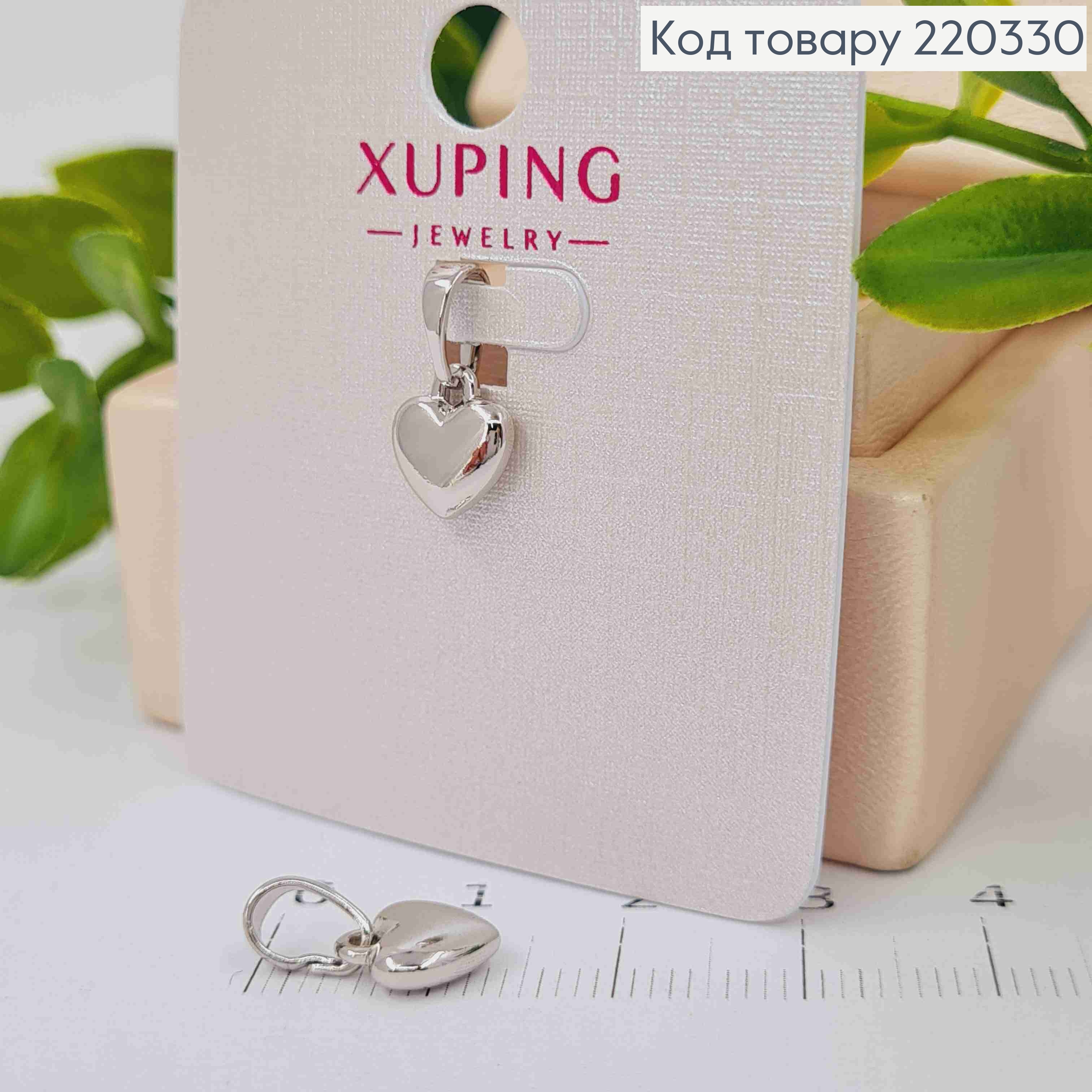 Кулон родованный объемное "СЕРДЦЕ", 1,1см, Xuping 220331 фото