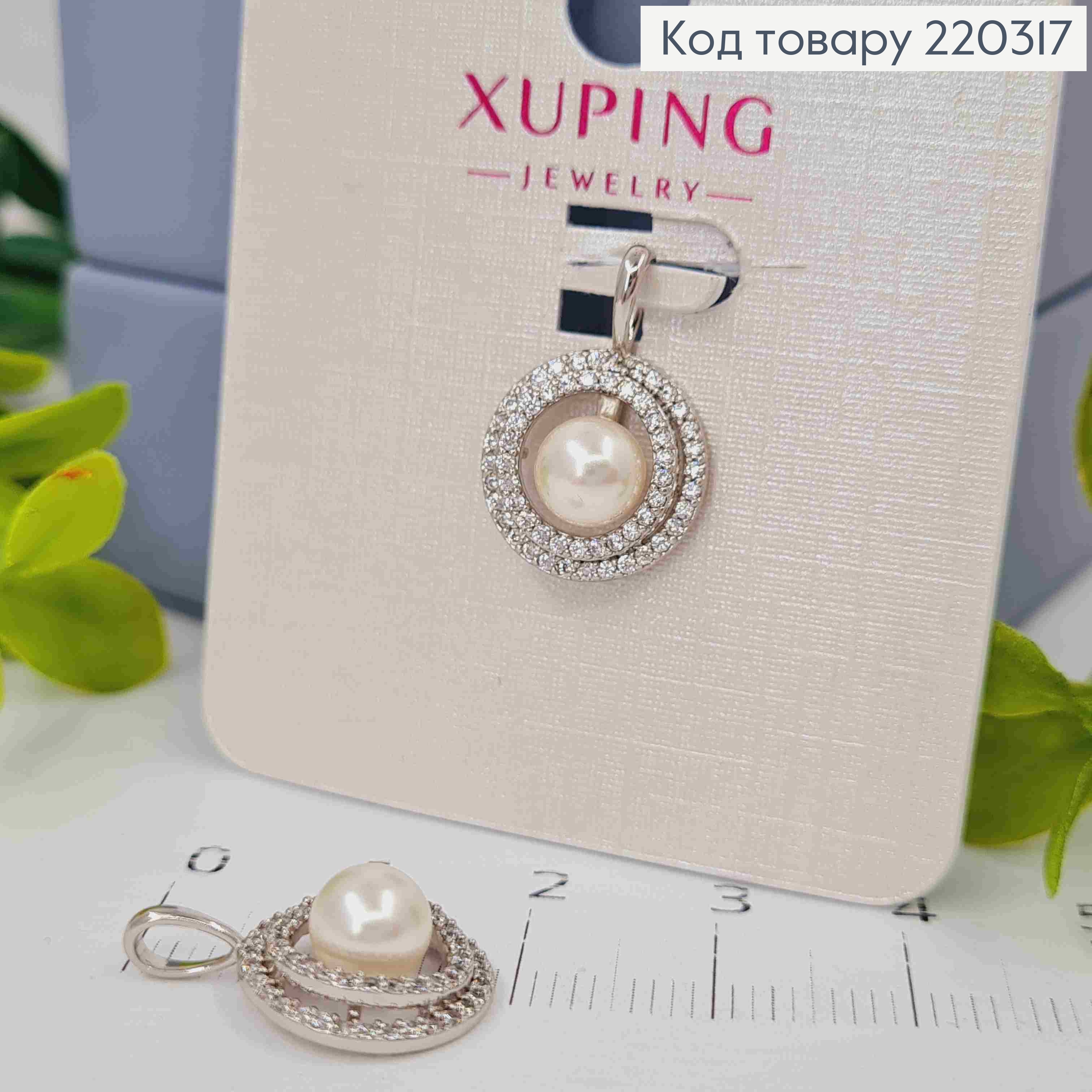 Кулон родованный, Жемчужинка в оправе с Блестящими камешками, размер 1,2см, Xuping 220342 фото
