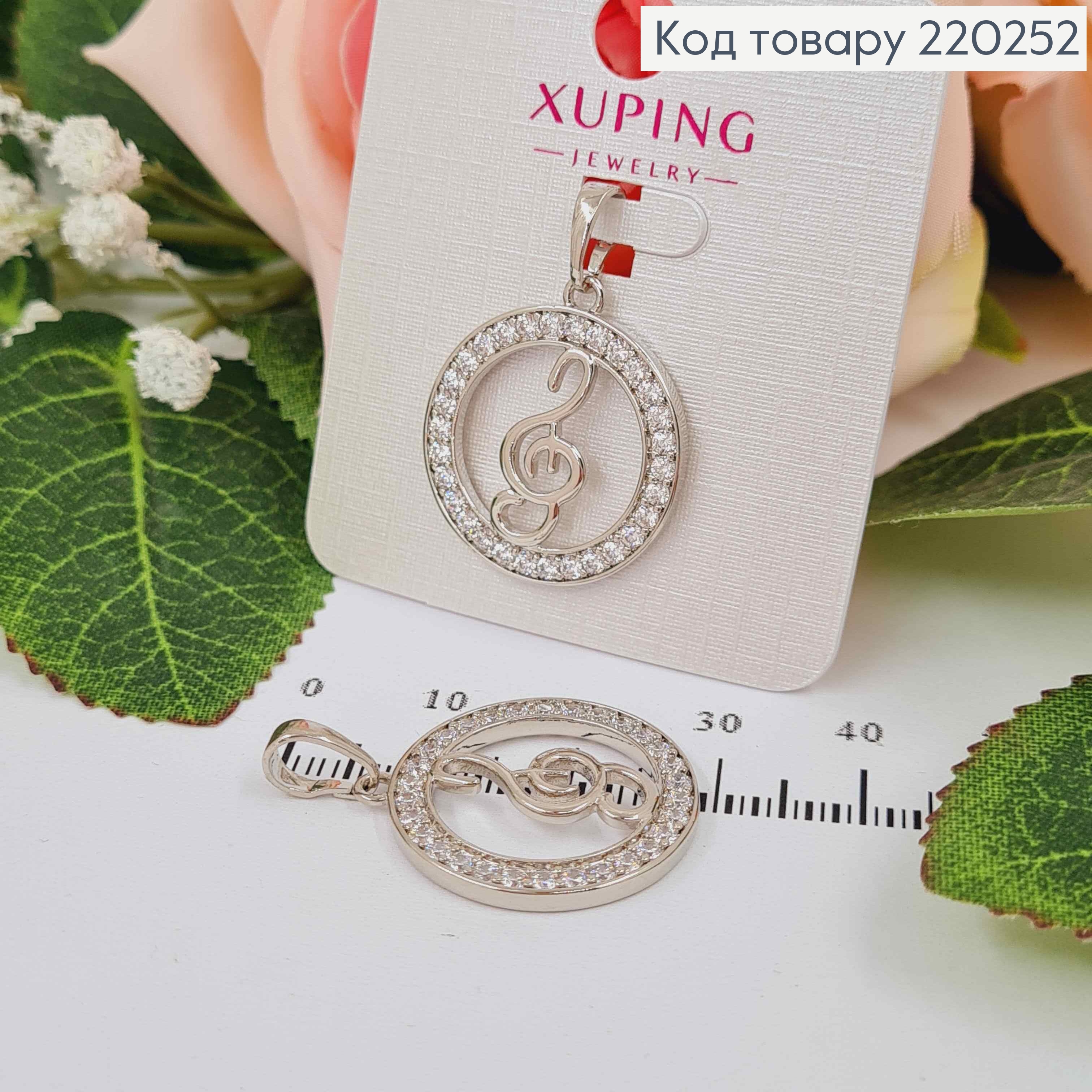 Кулон родованный, "Скрипический ключ" в круглой оправе из камешков, 2см, Xuping