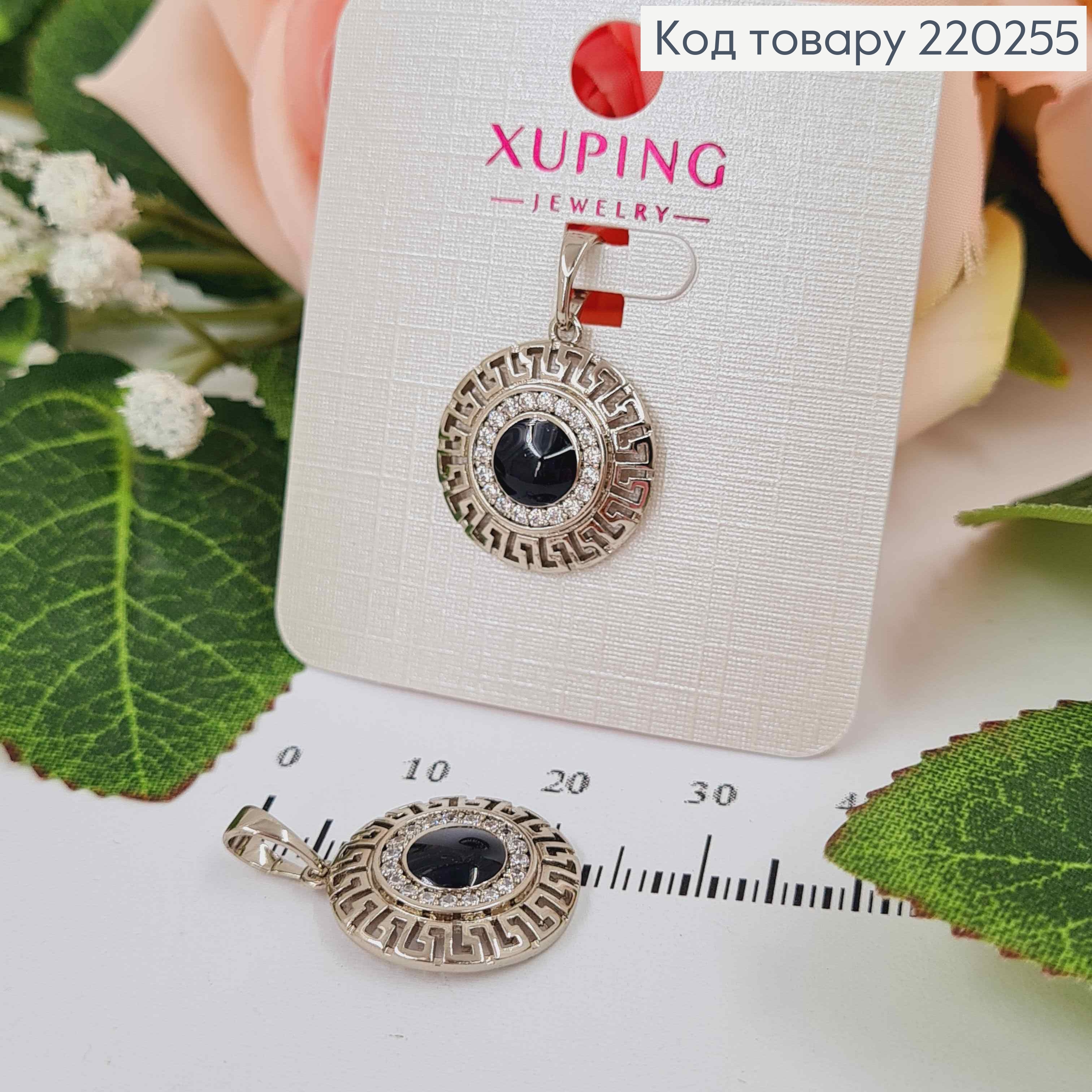 Кулон родованный "Коло" с блестящими камешками, размер 1,4см, Xuping 220341 фото