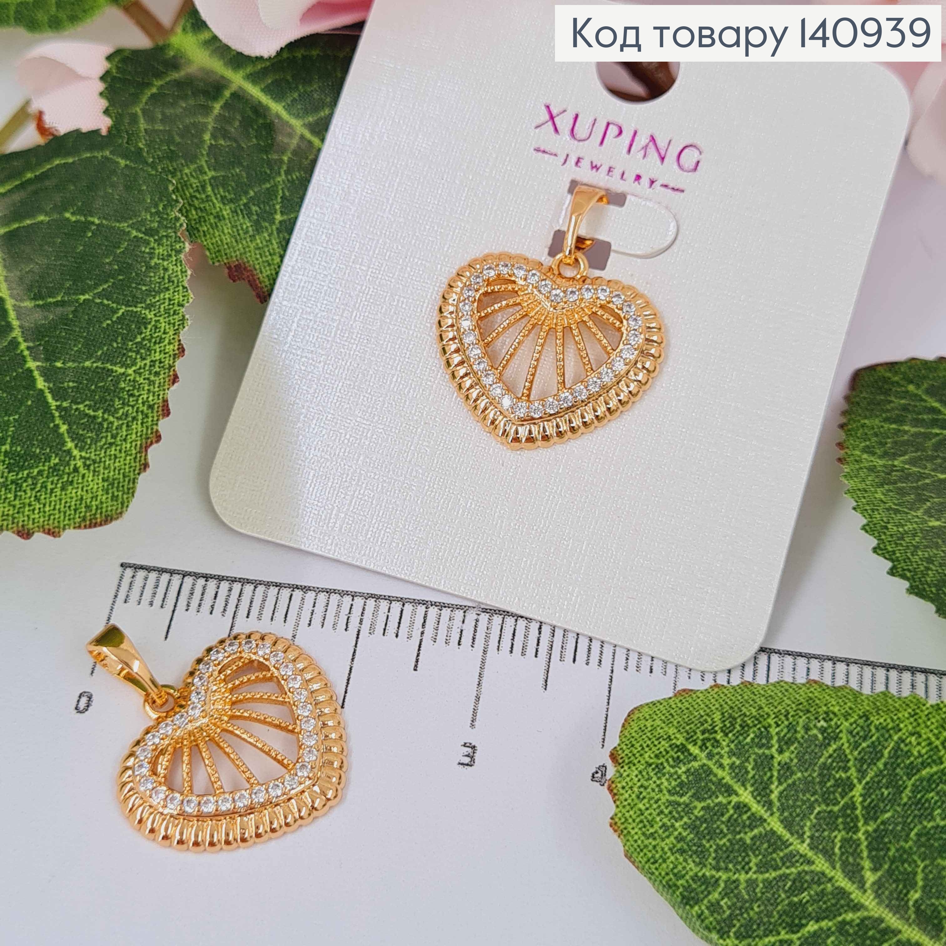 Кулон Сердце в блестящих камнях, 1,8см, Xuping 18K