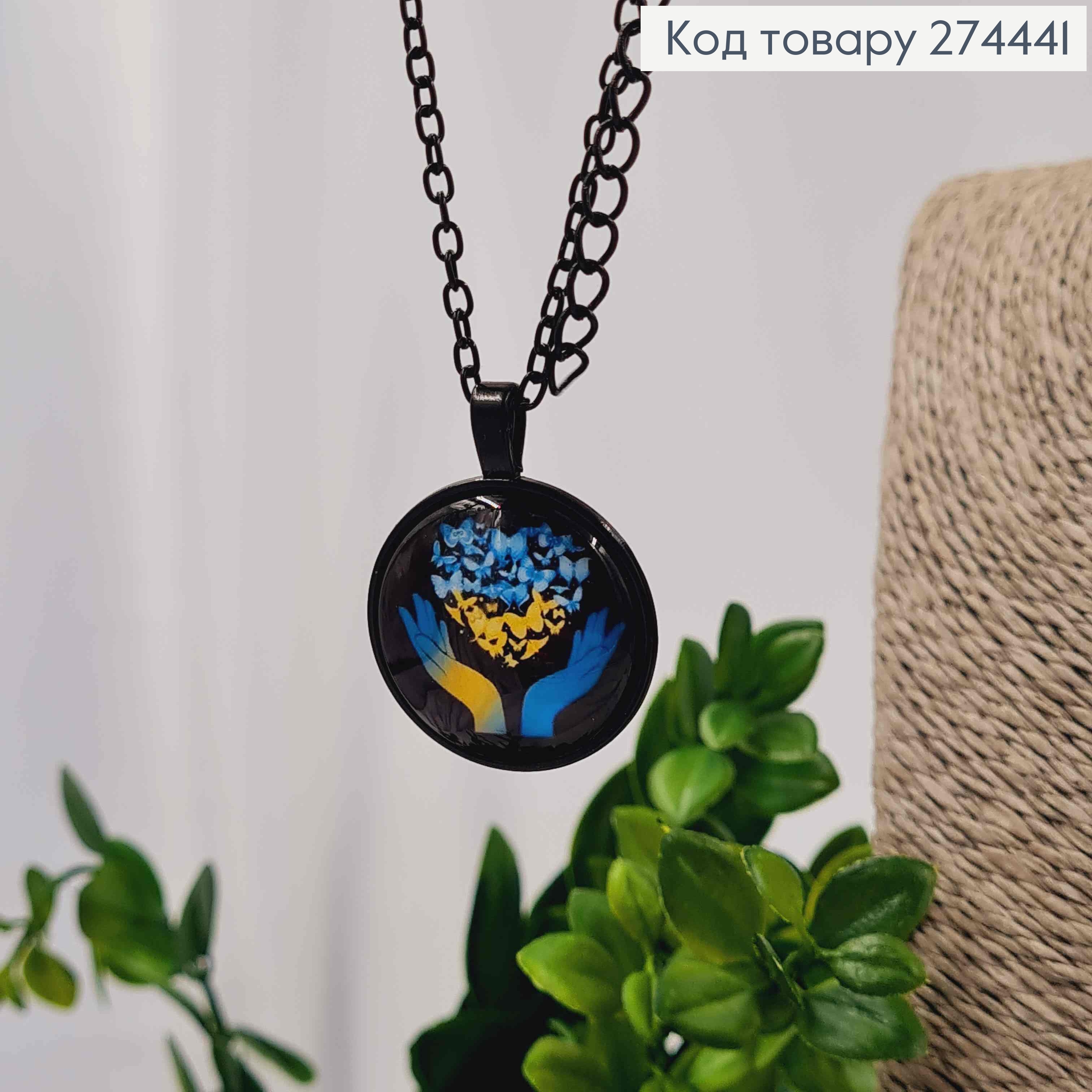 Шнурочок сине-желтый, с подвеской Герб Украины 3,5см, серебряного цвета, дл. 50+4см 236404 фото